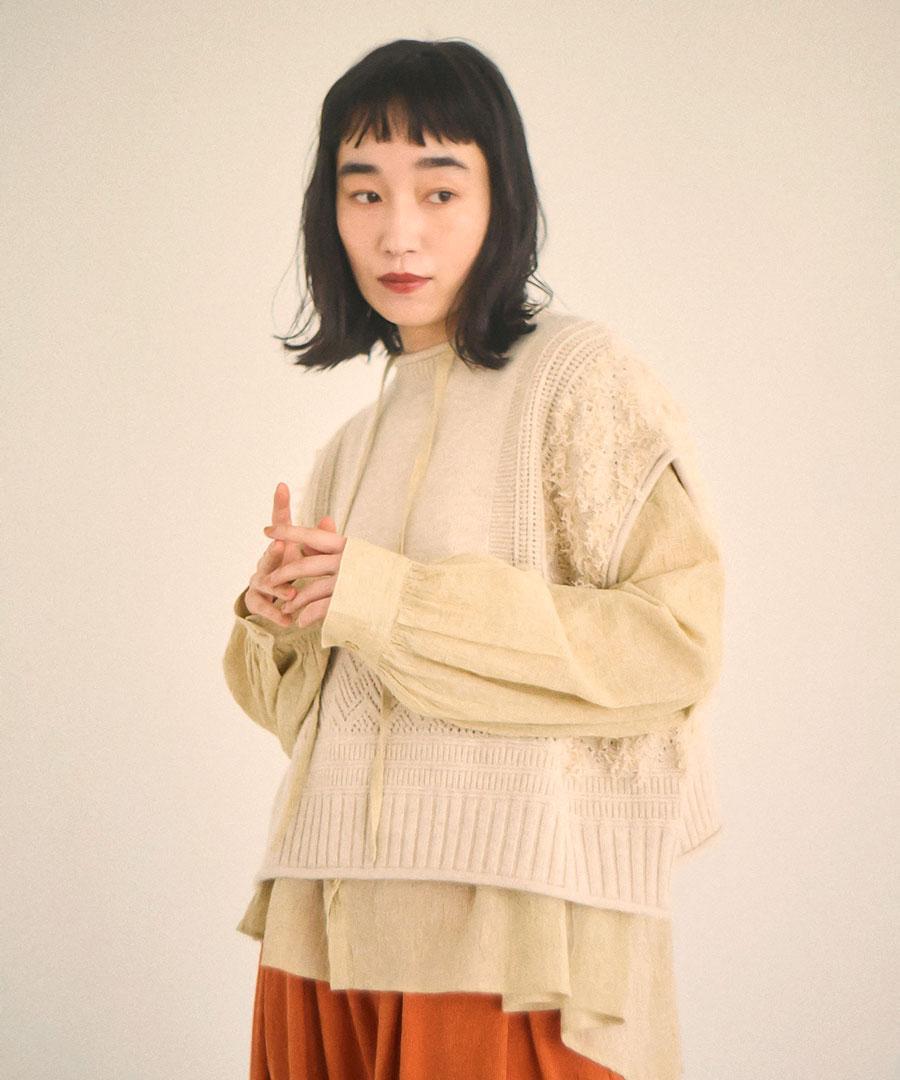 カットジャガード スタンドカラーブラウス