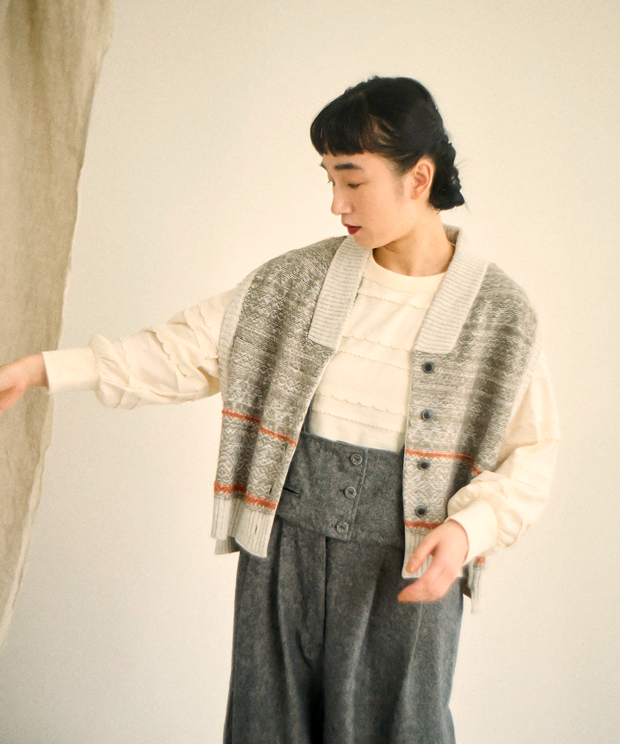 シンプルなワンピースやトップスに重ね着するだけでコーデに奥行きを与えてくれるアイテムです。