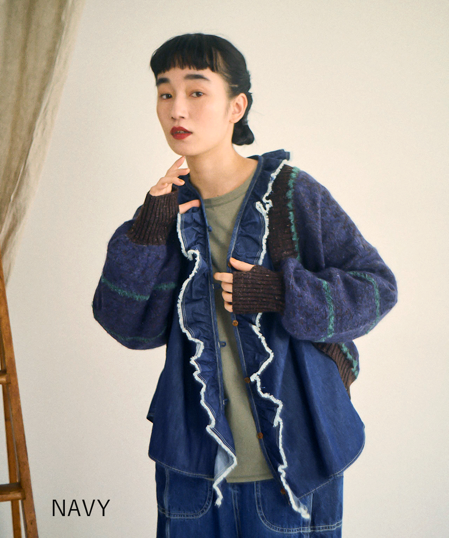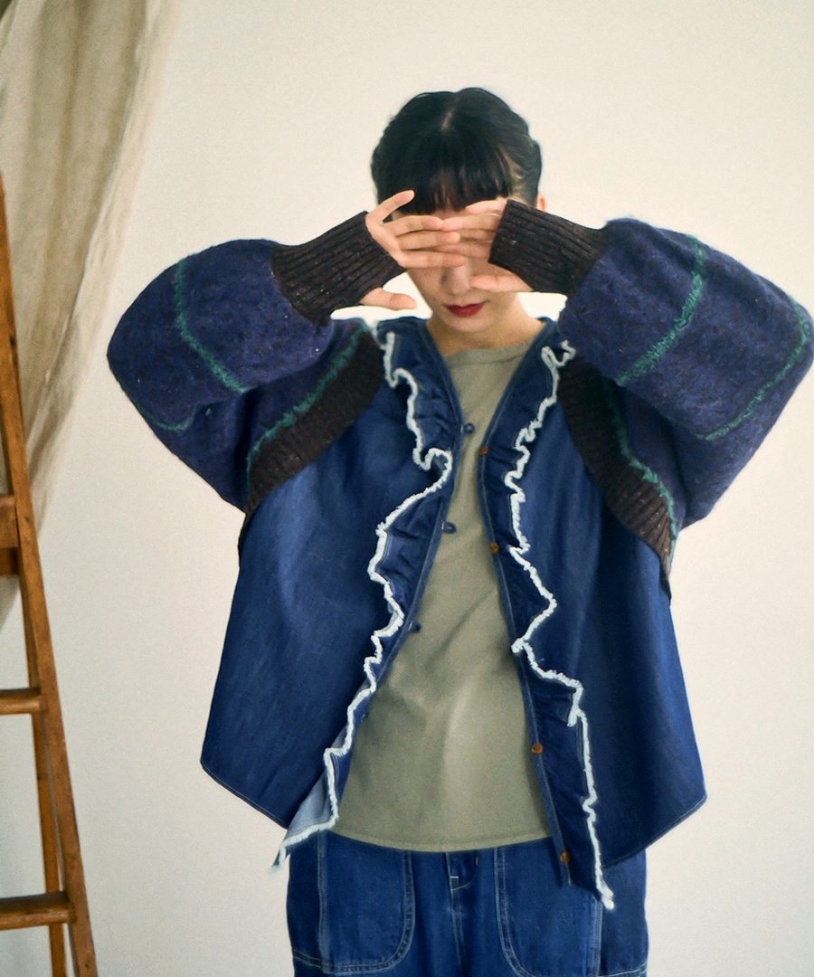 ライトオンスデニム フリルブラウス/INDIGO