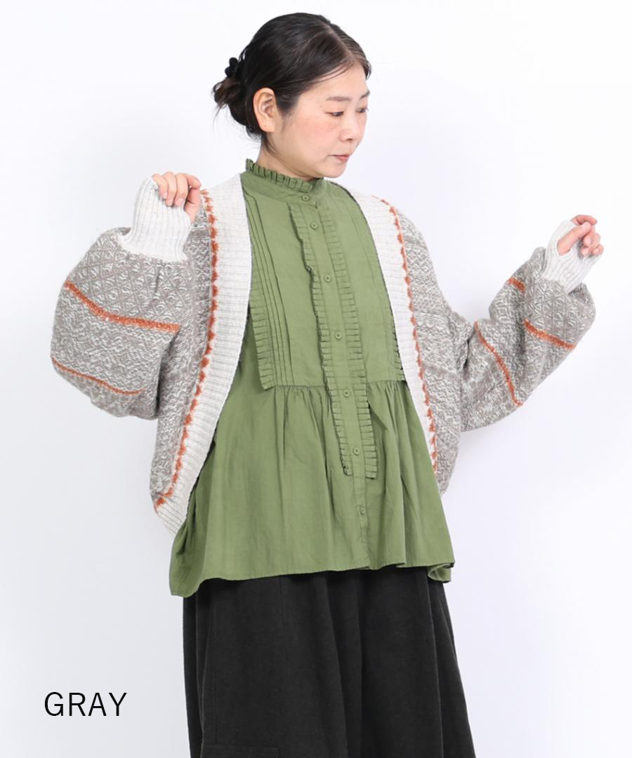 ミックスヤーンバックジャガード ボレロカーディガン