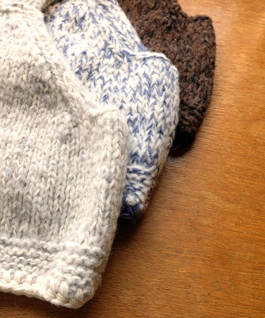 1枚1枚ロービングと呼ばれる手作業で編み上げた、表情豊かなハンドニットです。