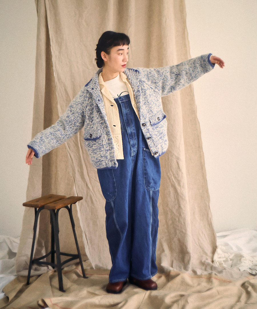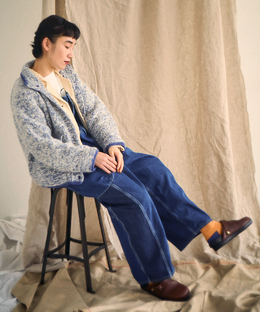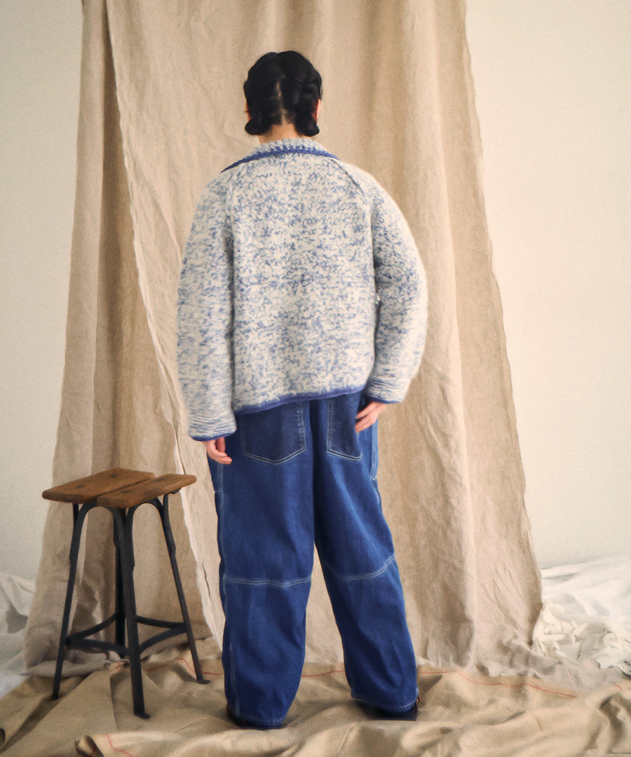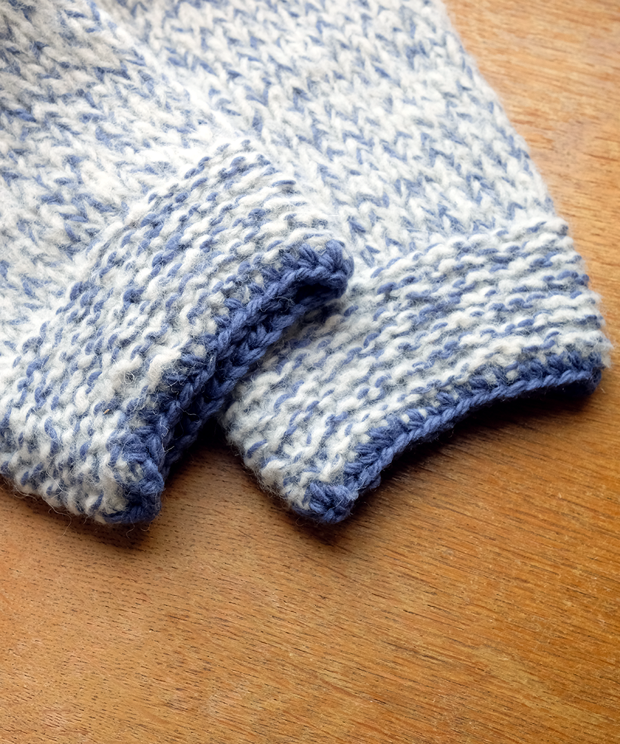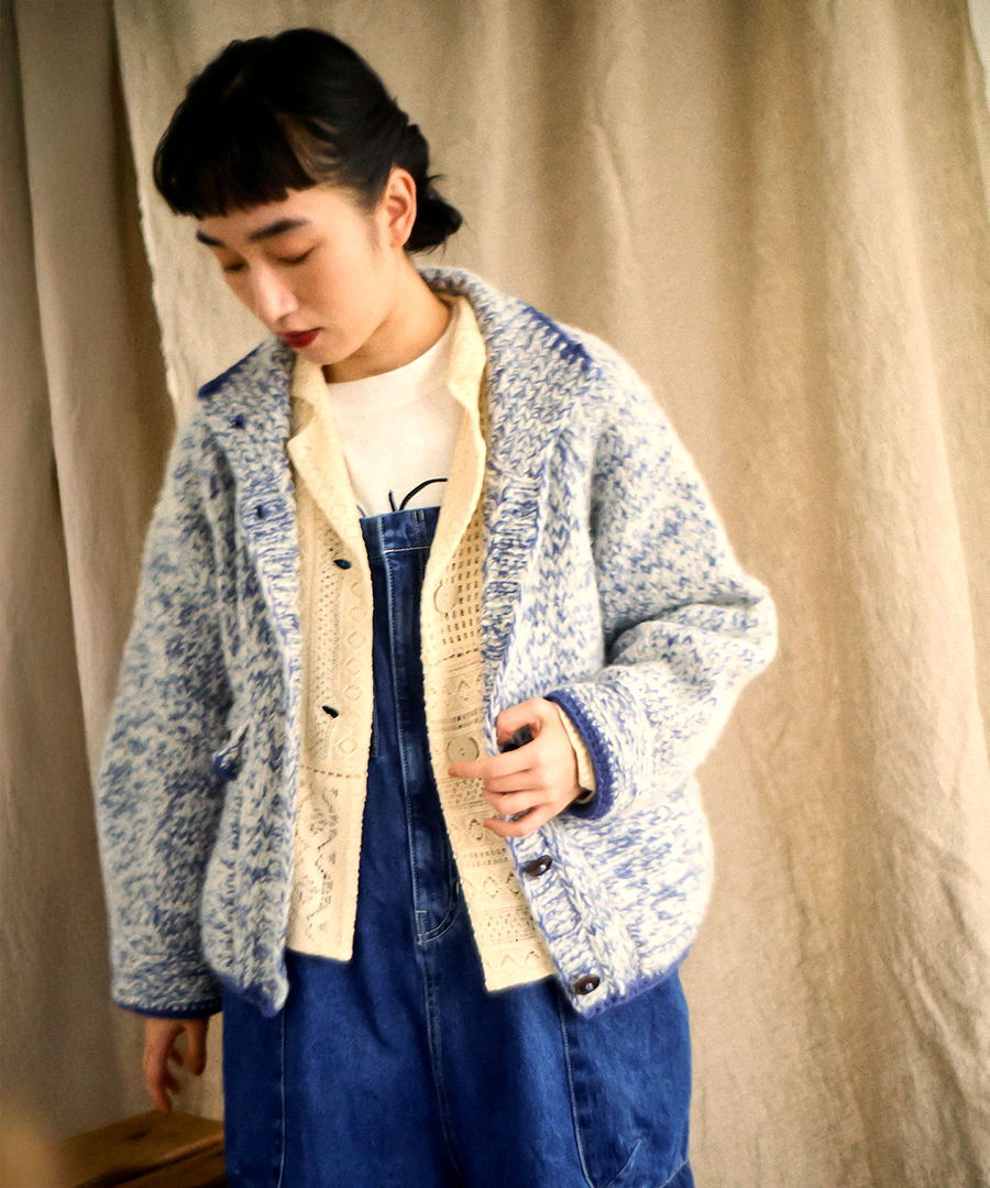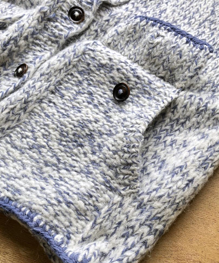 1枚1枚ロービングと呼ばれる手作業で編み上げた、表情豊かなハンドニットです。