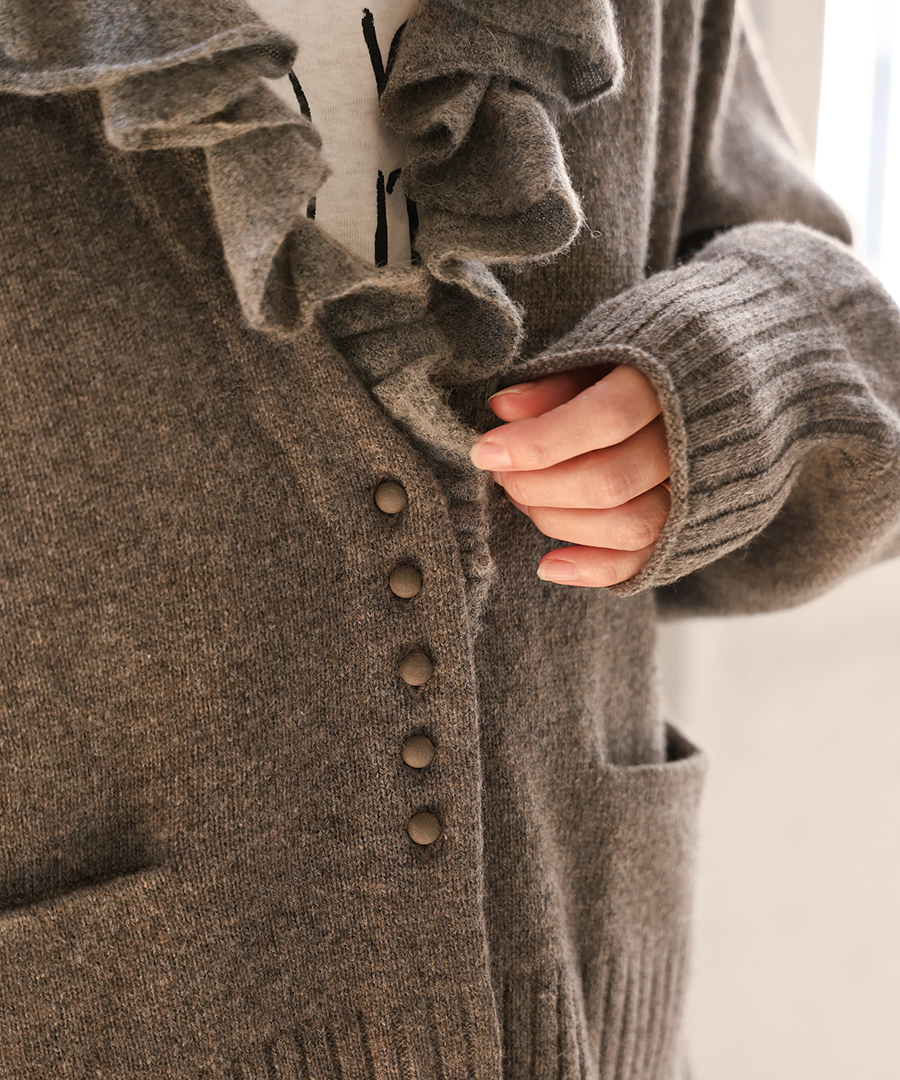 ふわふわ質感で大人の甘さを纏うフリルカーディガン。