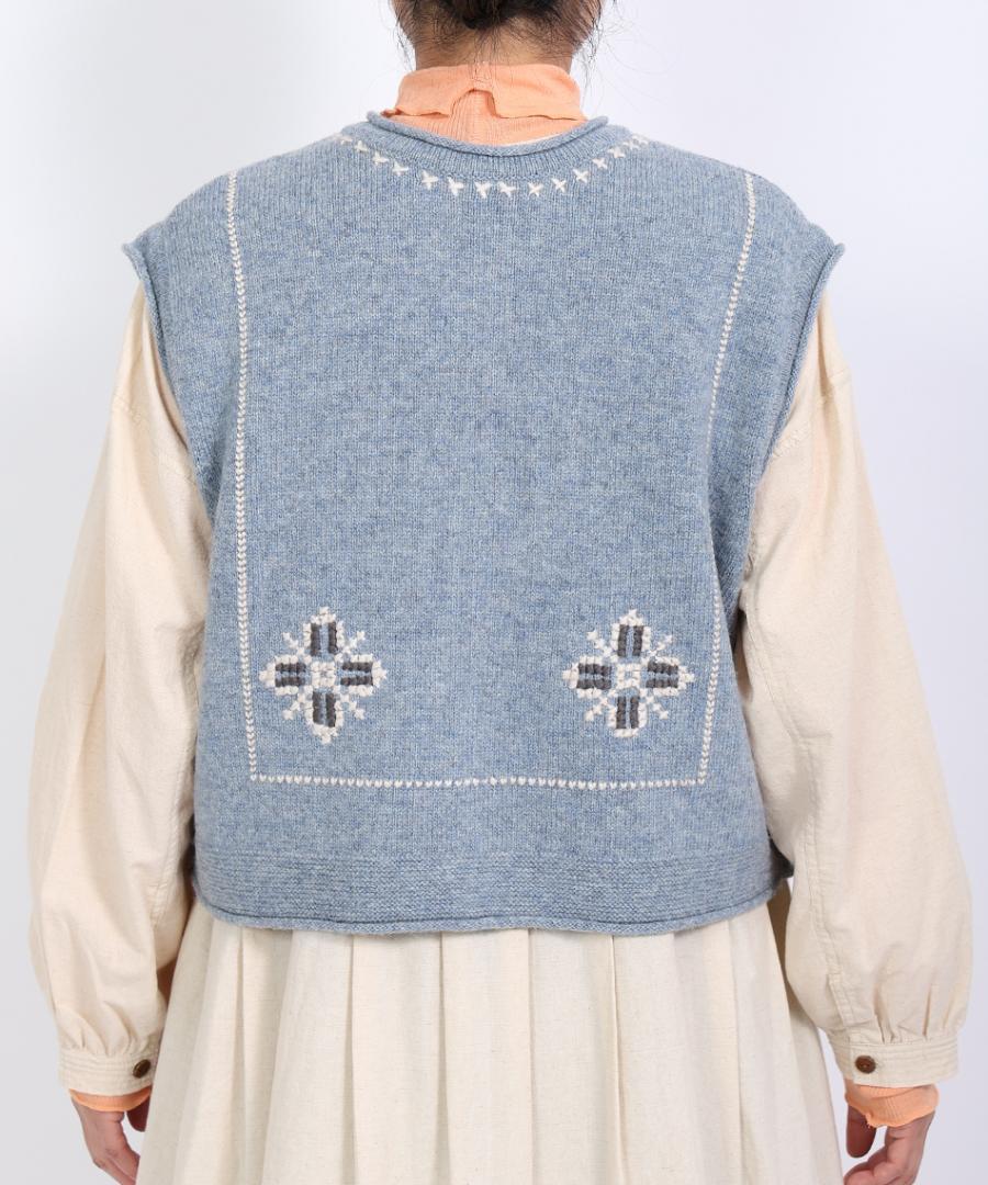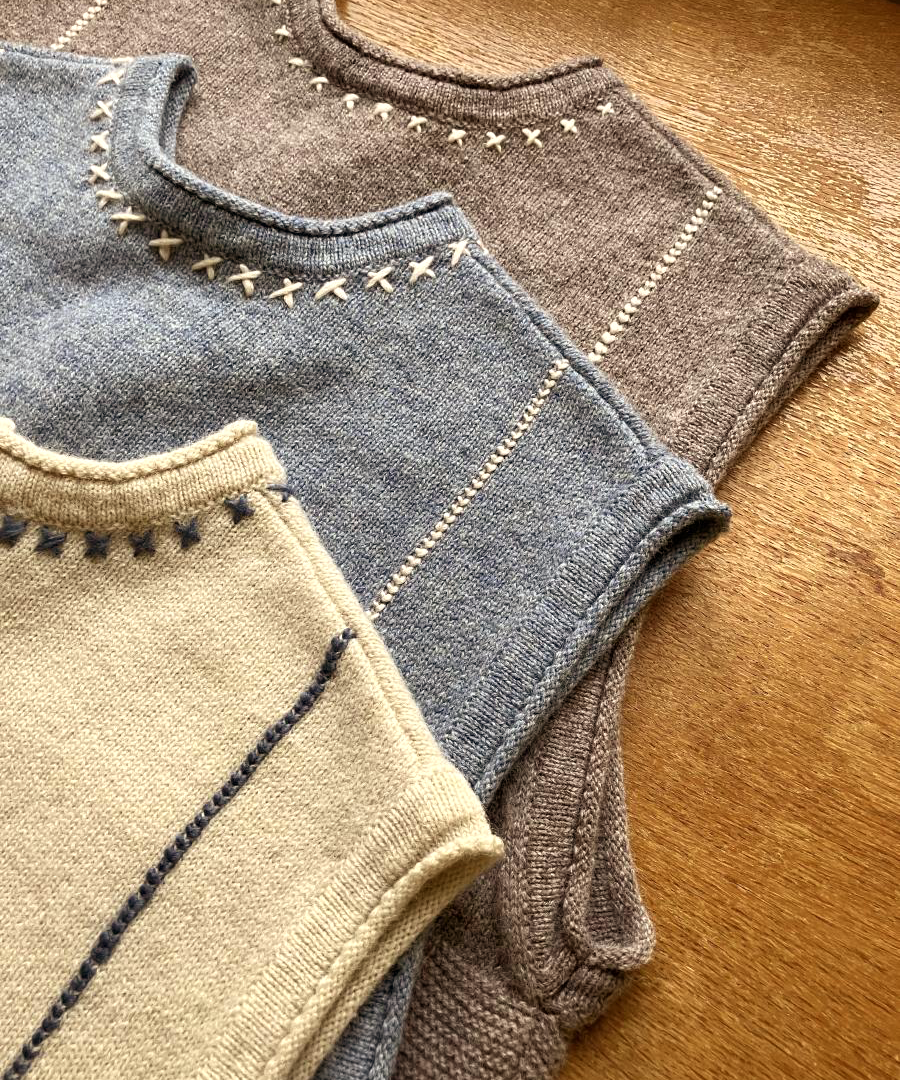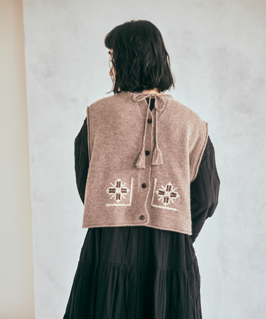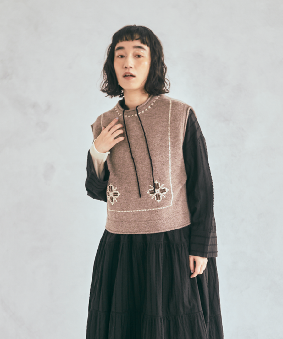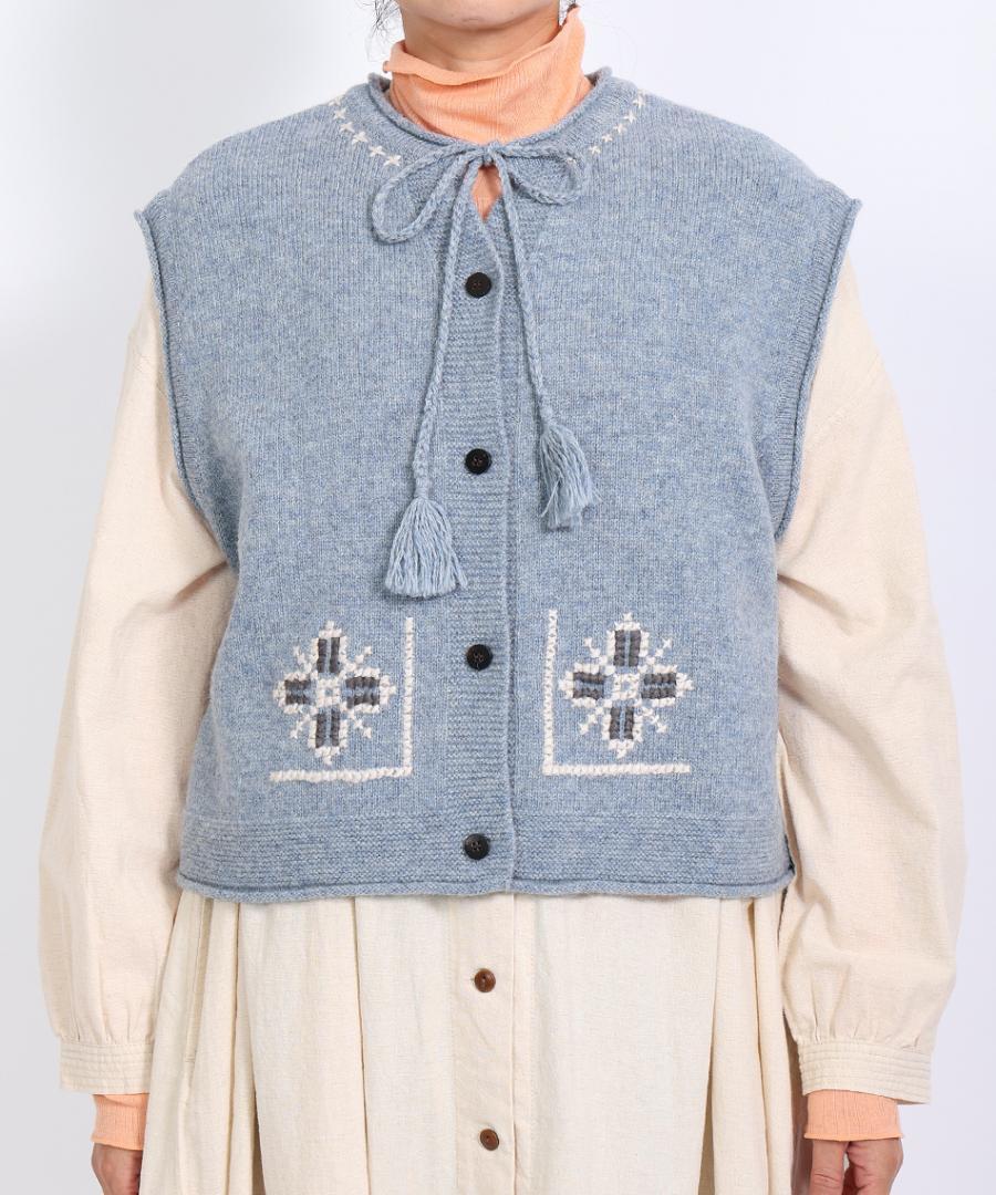 シェットランドウール×ロービング刺繍 2wayベスト