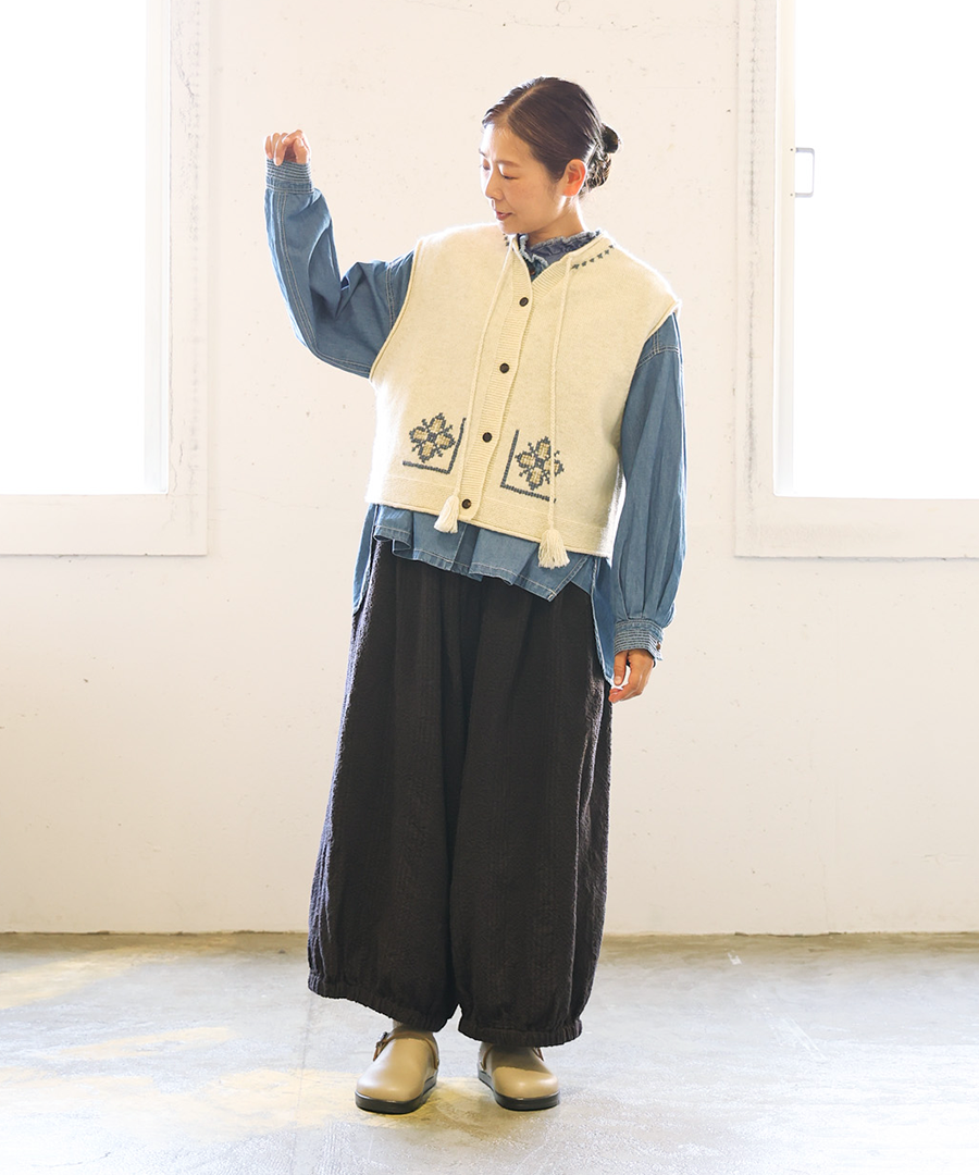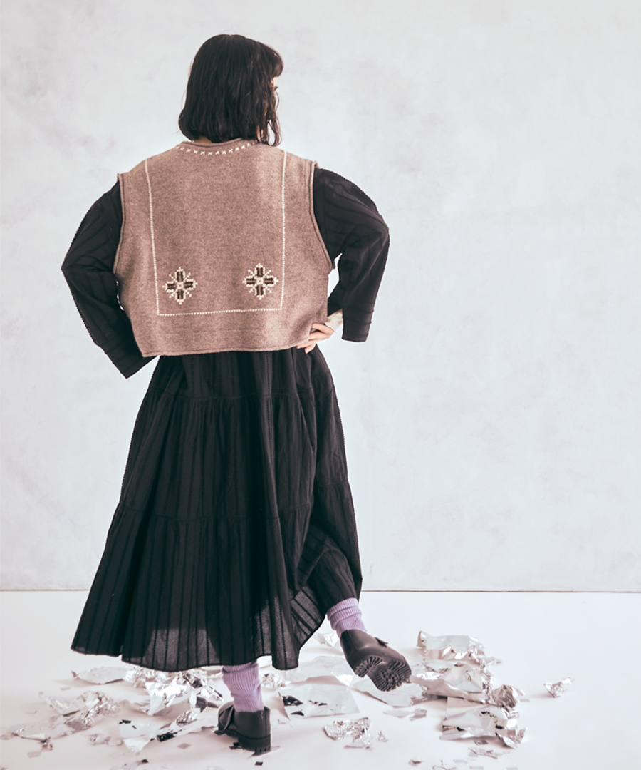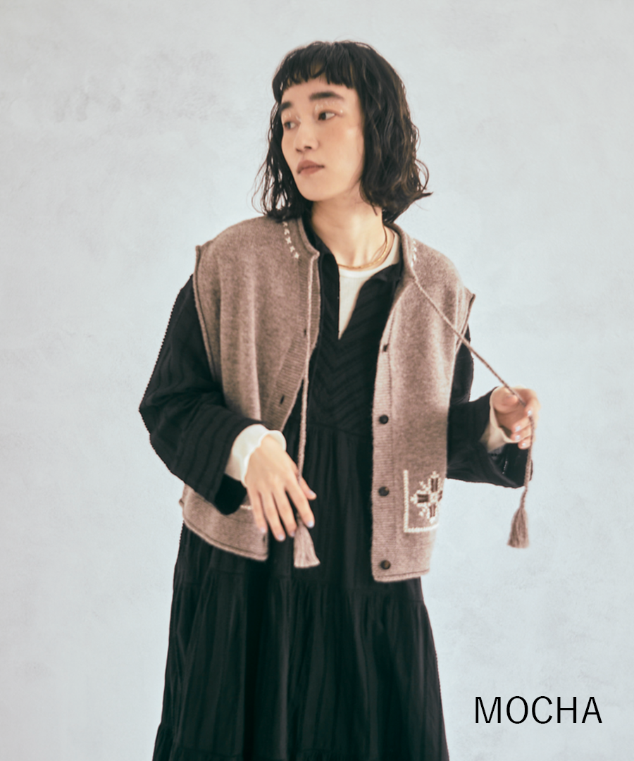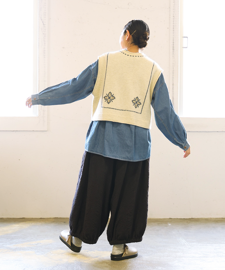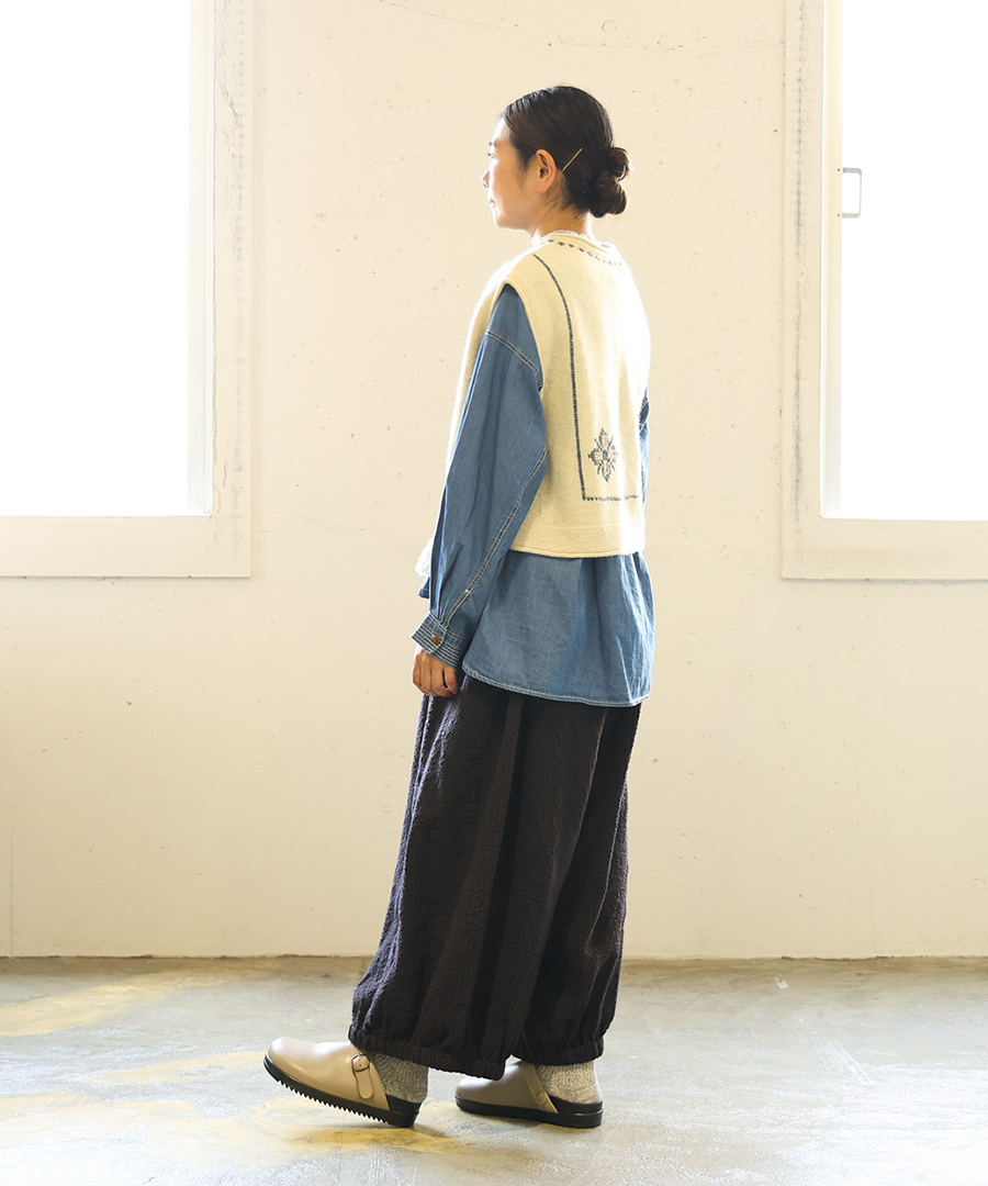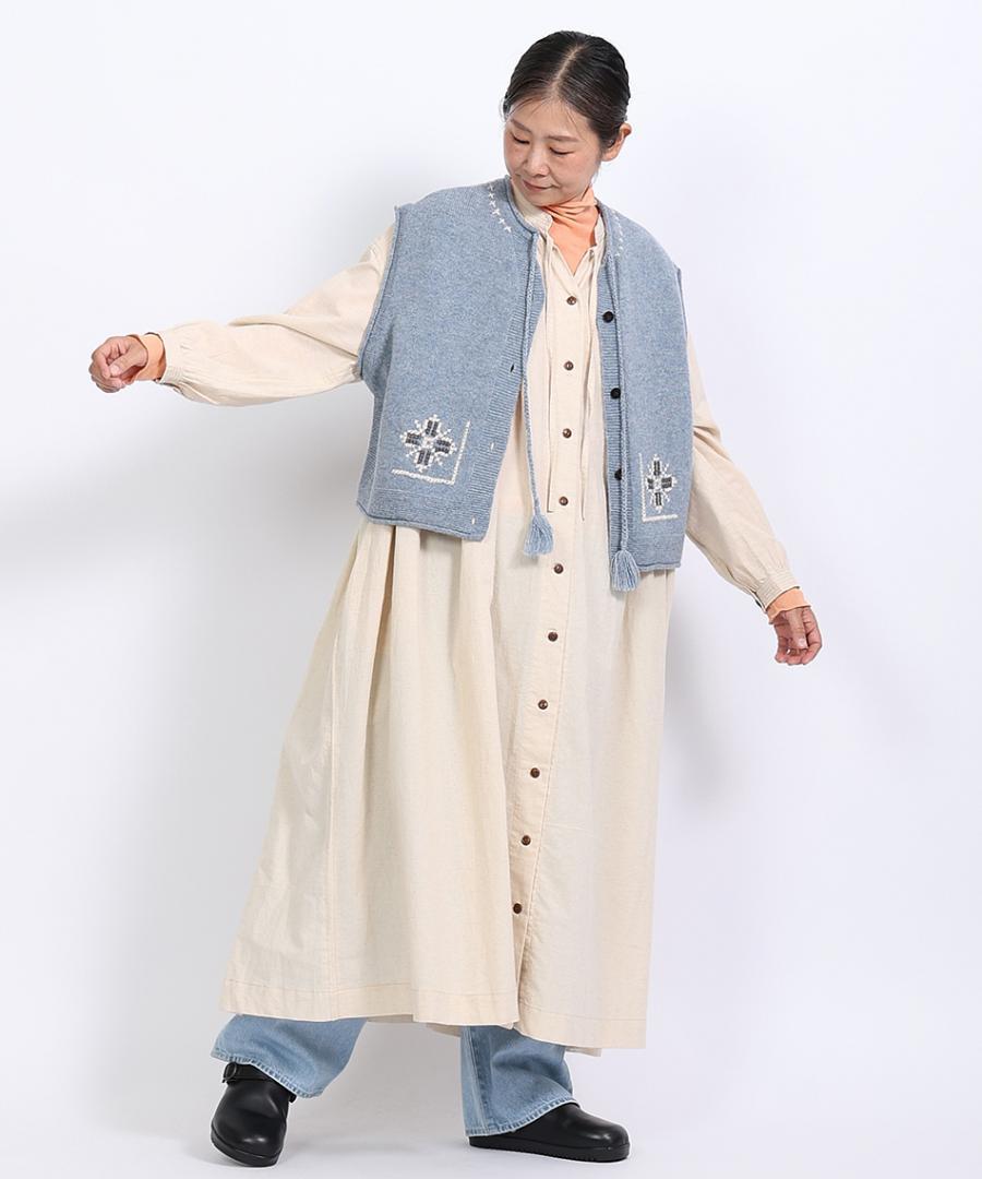 シェットランドウール×ロービング刺繍 2wayベスト