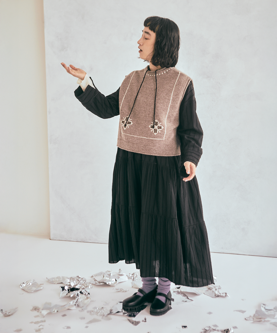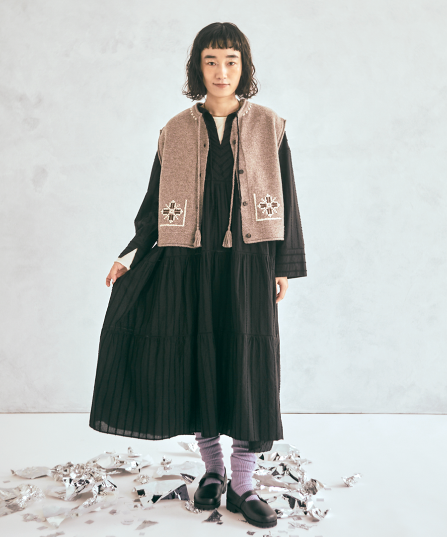 ふんわり軽やかなハンド刺繍が魅力の2wayベスト。