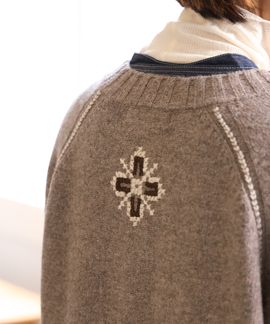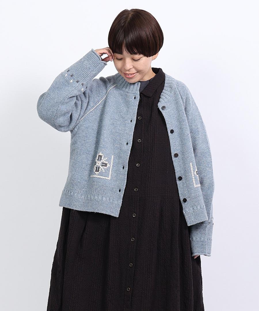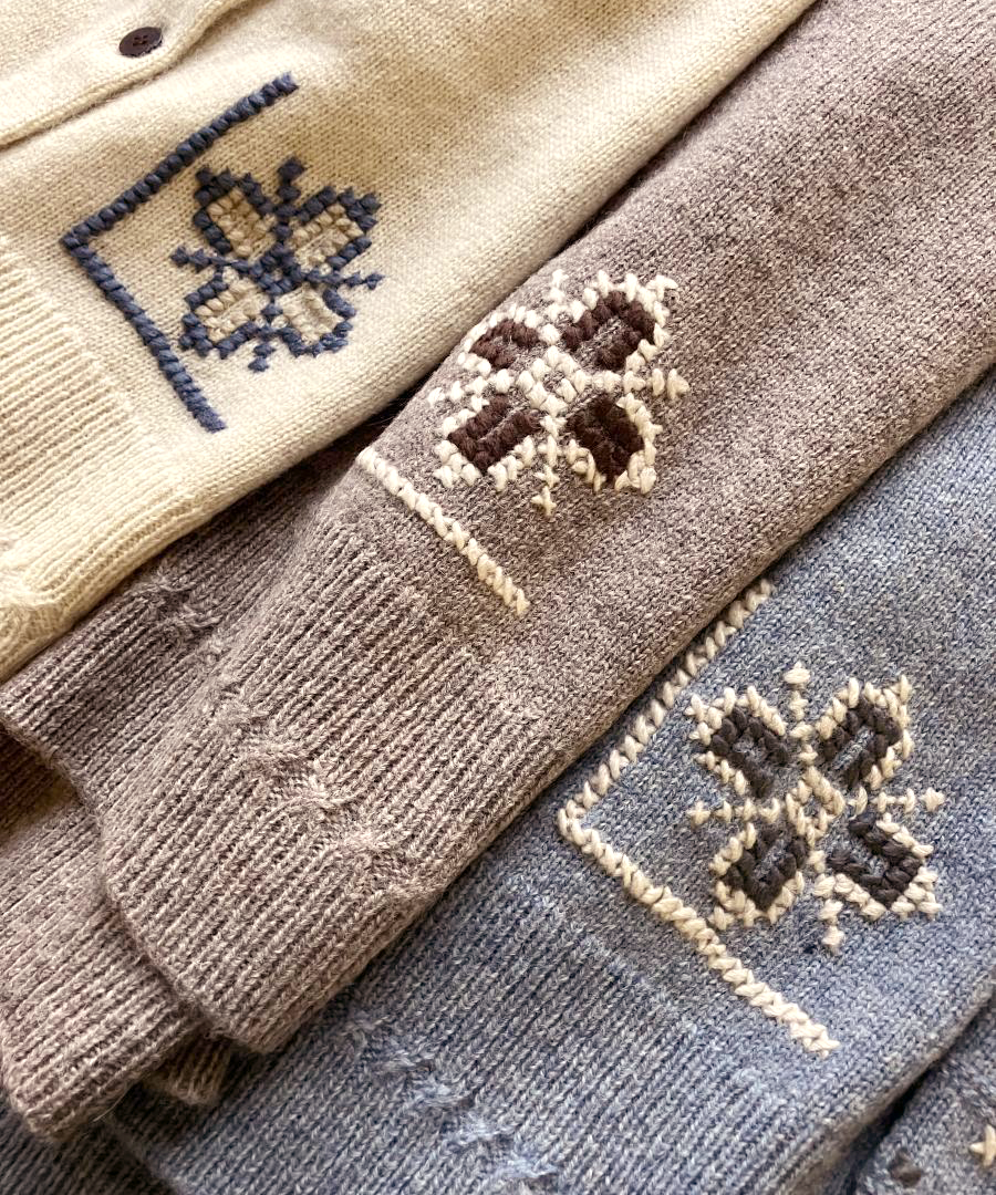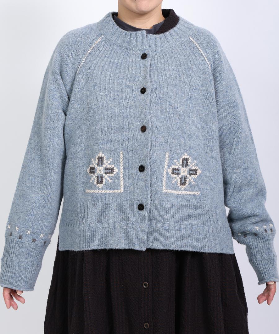 シェットランドウール×ロービング刺繍 カーディガン