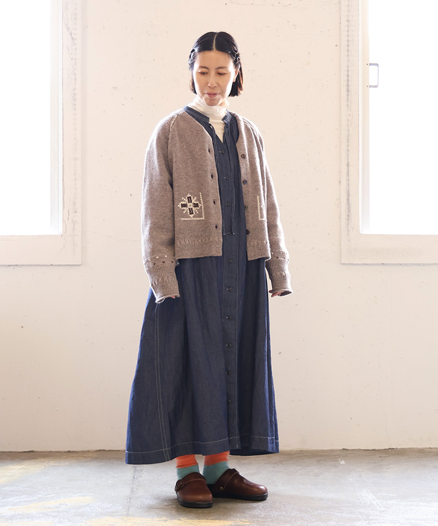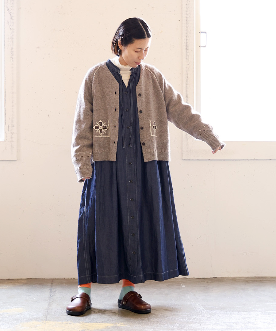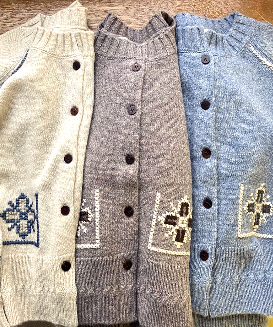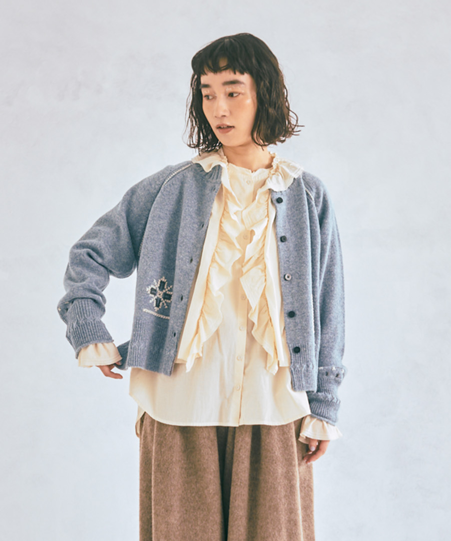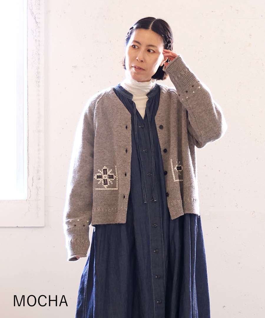 シェットランドウール×ロービング刺繍 カーディガン