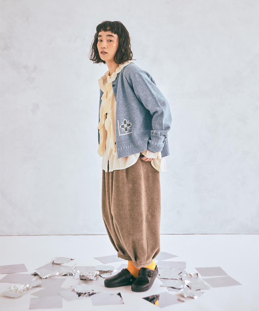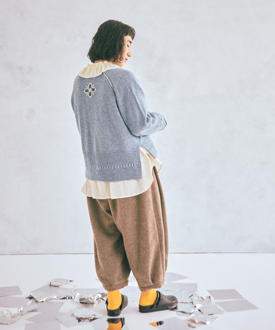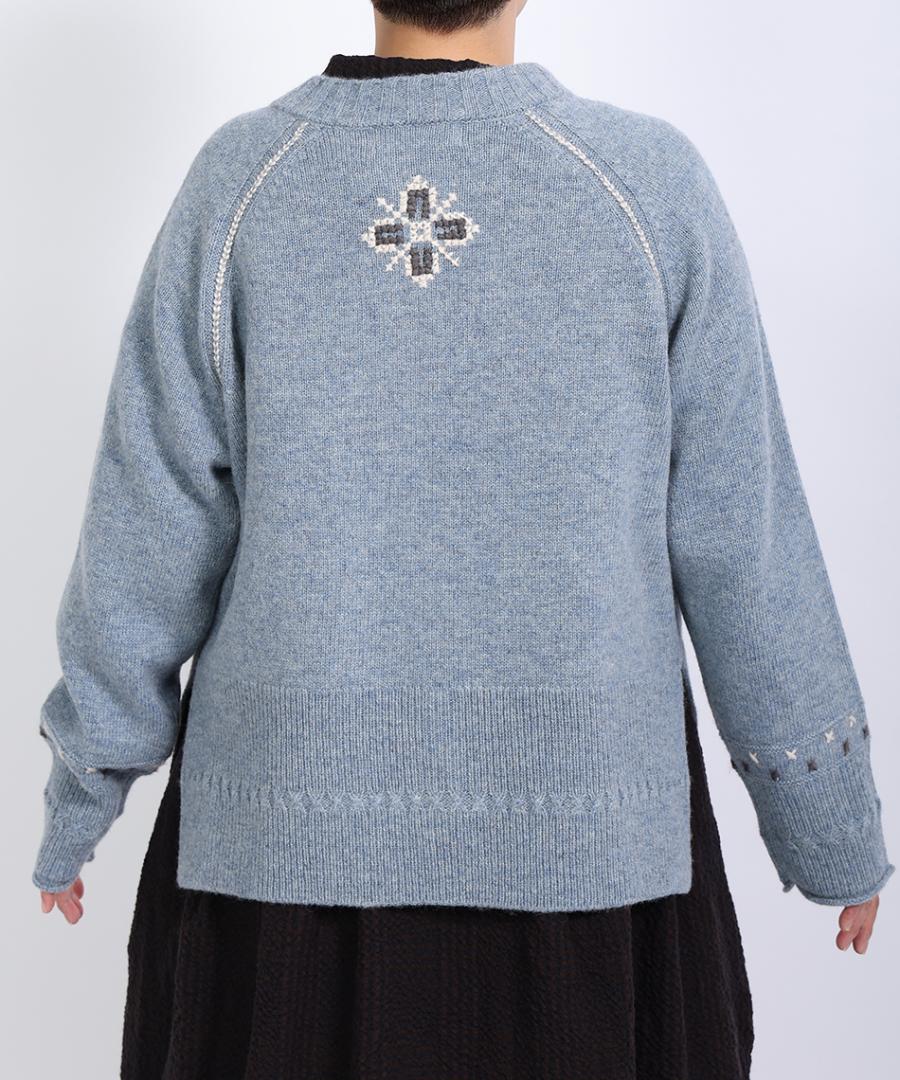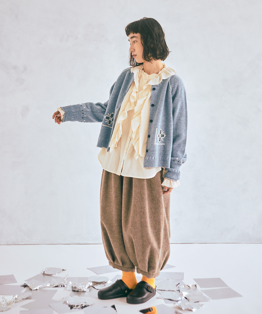 シェットランドウール×ロービング刺繍 カーディガン
