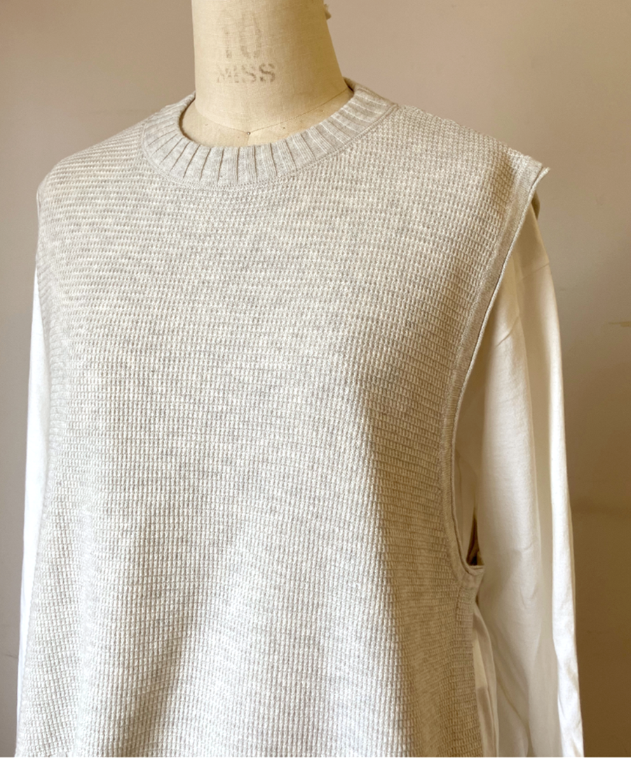 絶妙な抜け感をプラスする、大人のレイヤードベスト。