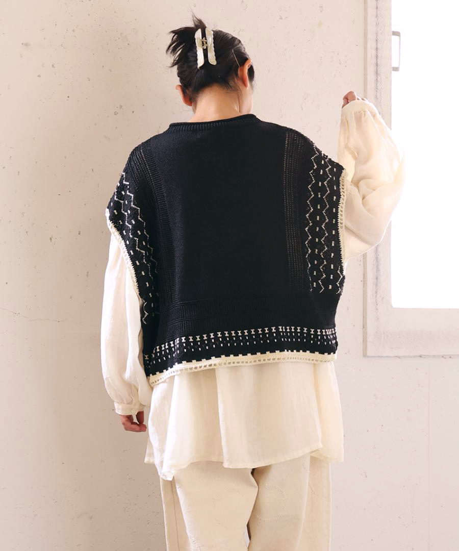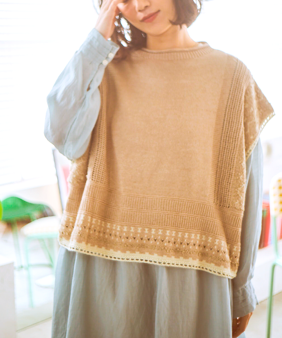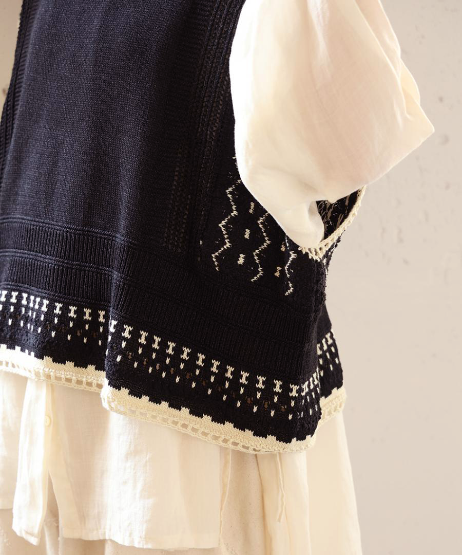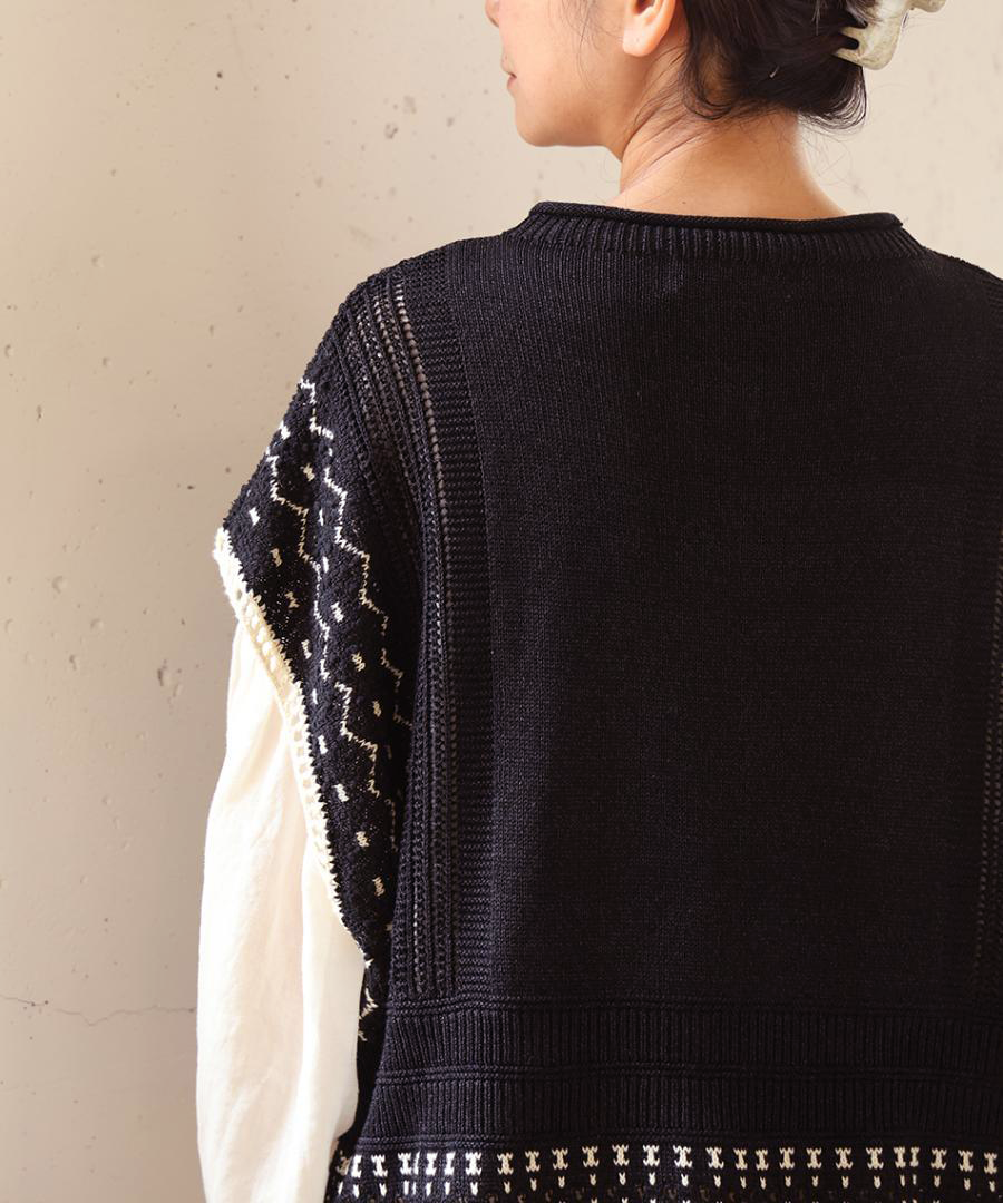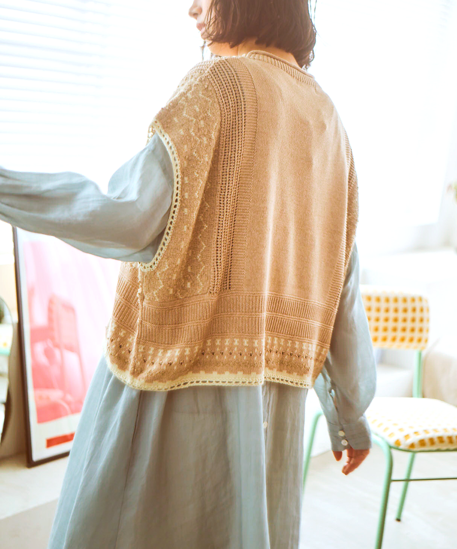重ねるだけでこなれ感。3種の糸が描くジャガードが際立つビッグベスト。