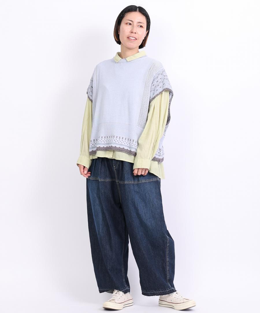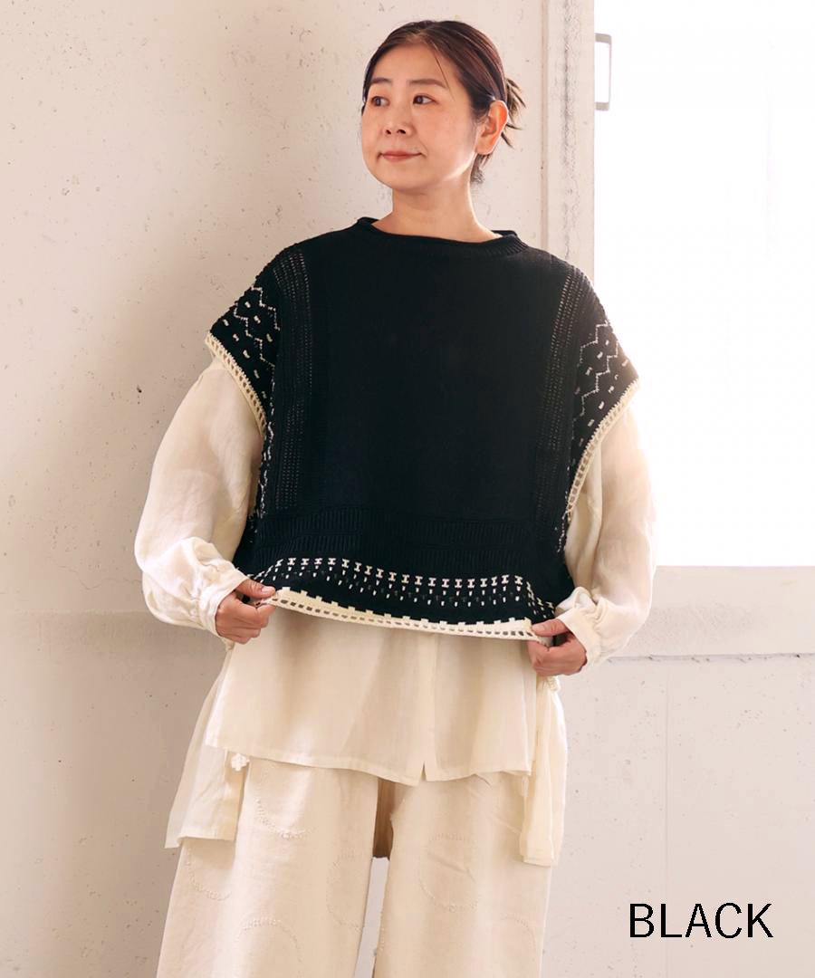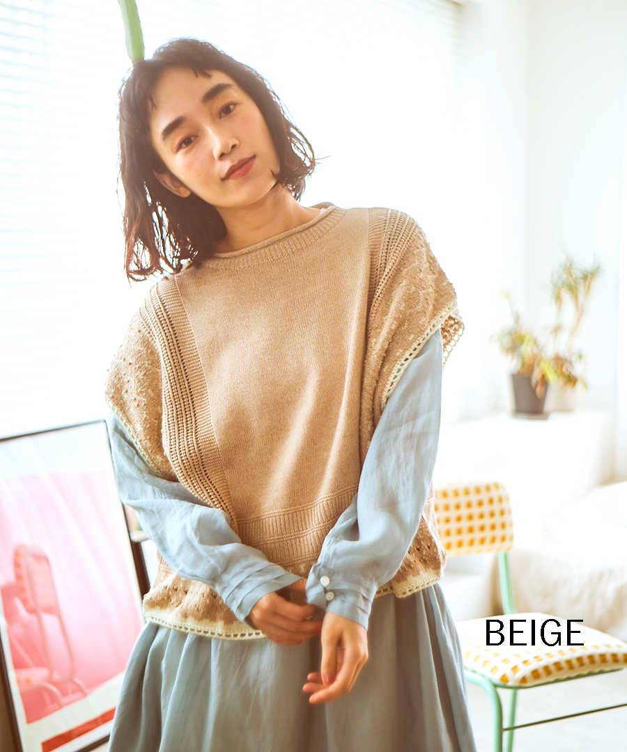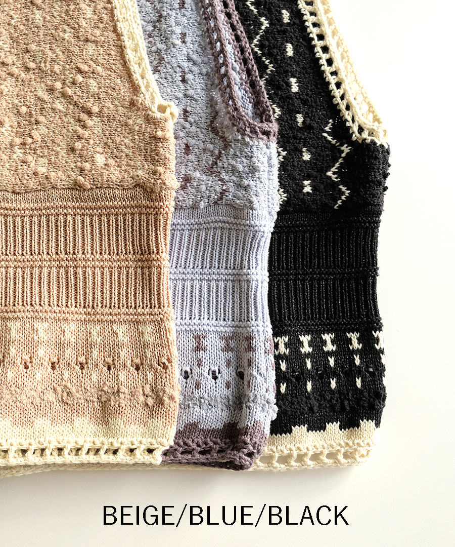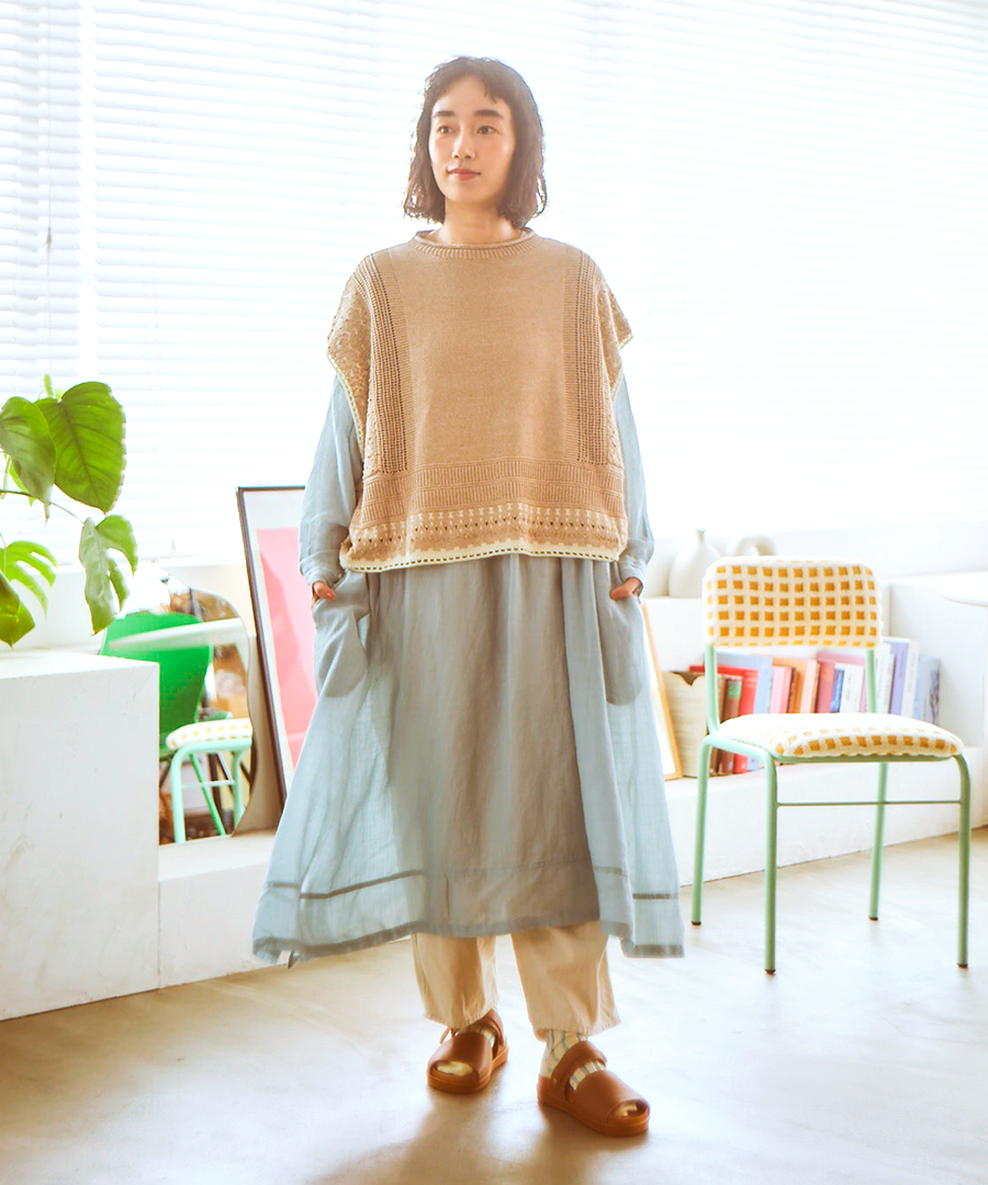 重ねるだけでこなれ感。3種の糸が描くジャガードが際立つビッグベスト。