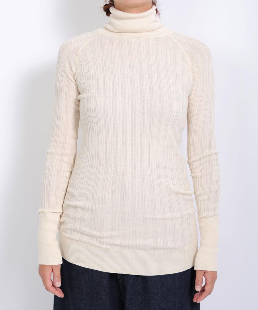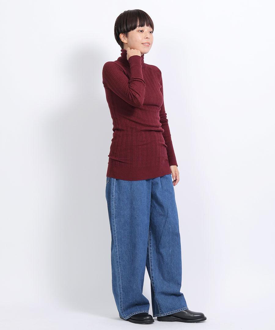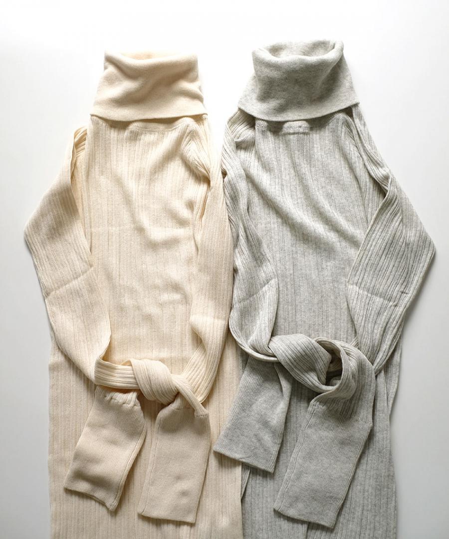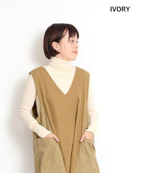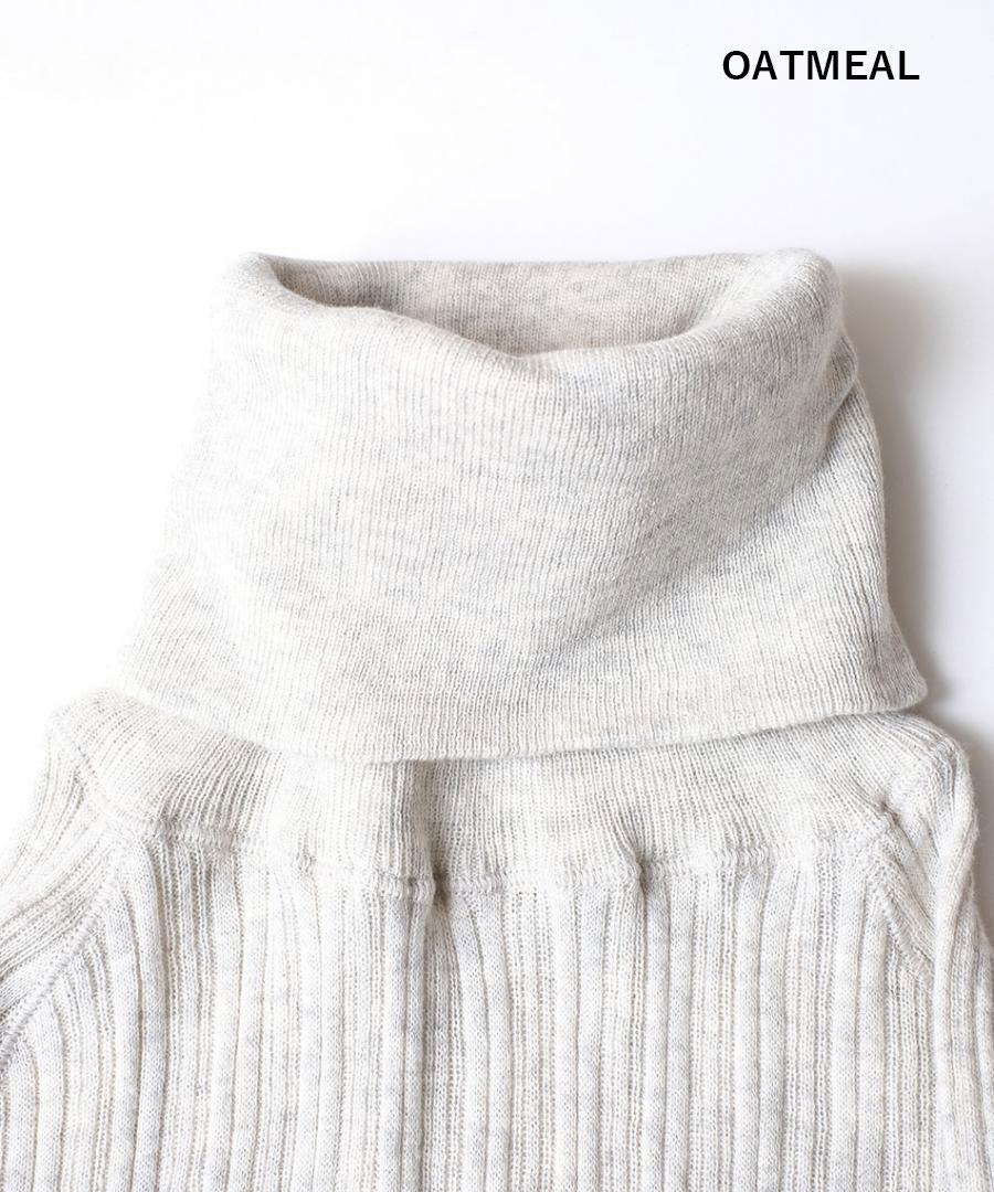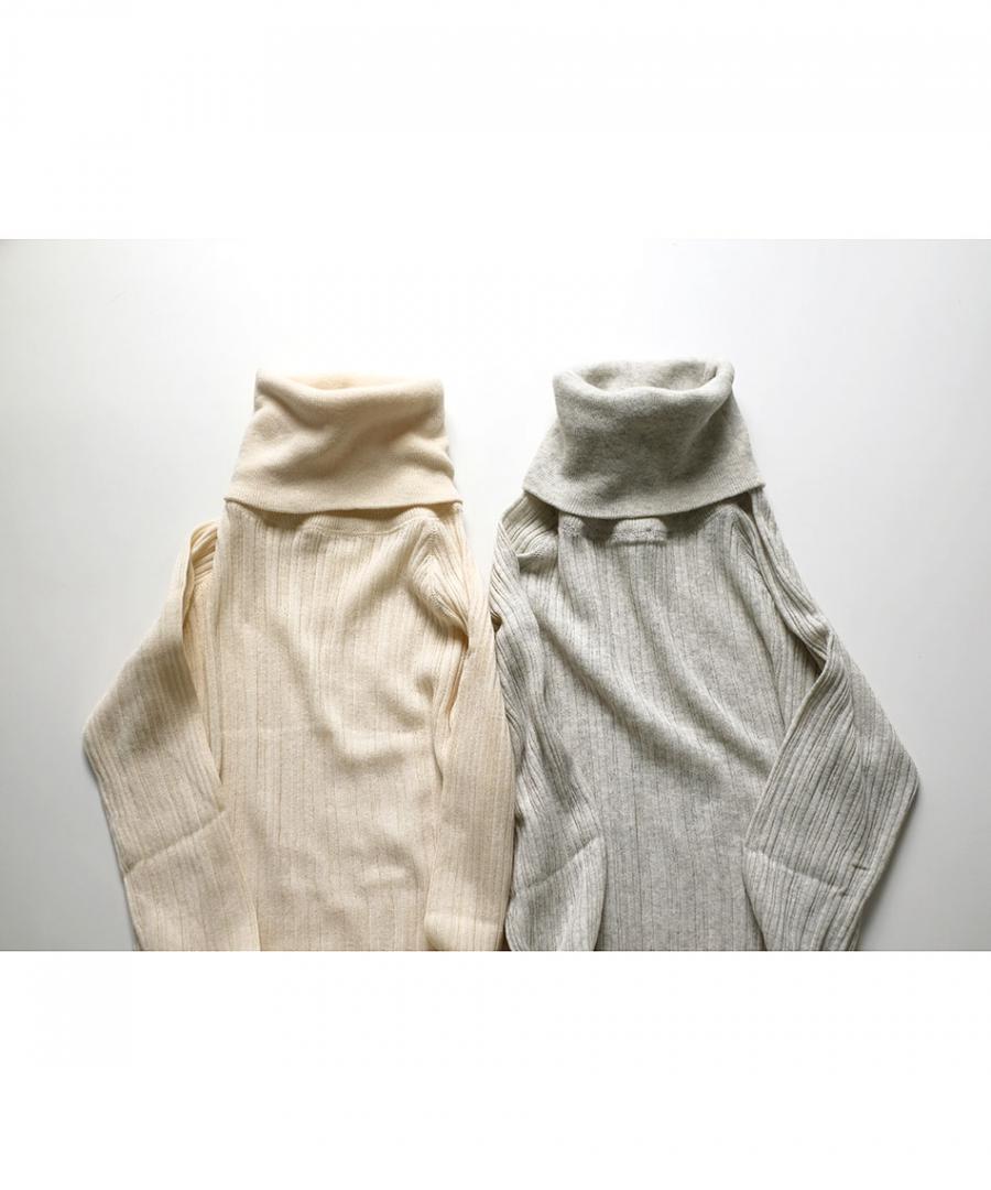 コットン100%で、薄手でふわりと柔らかな肌触りのタートルニットです。