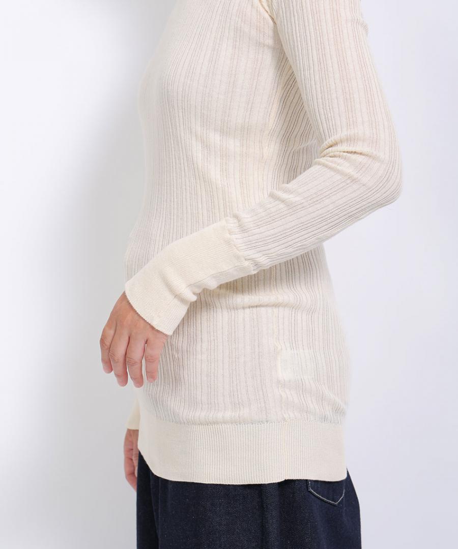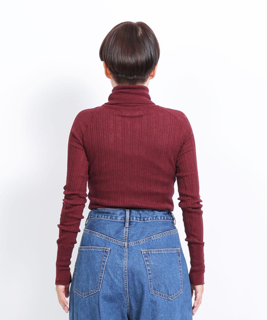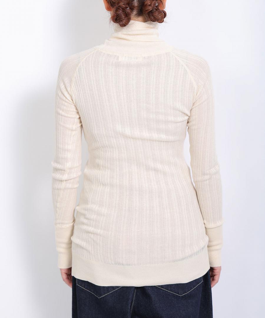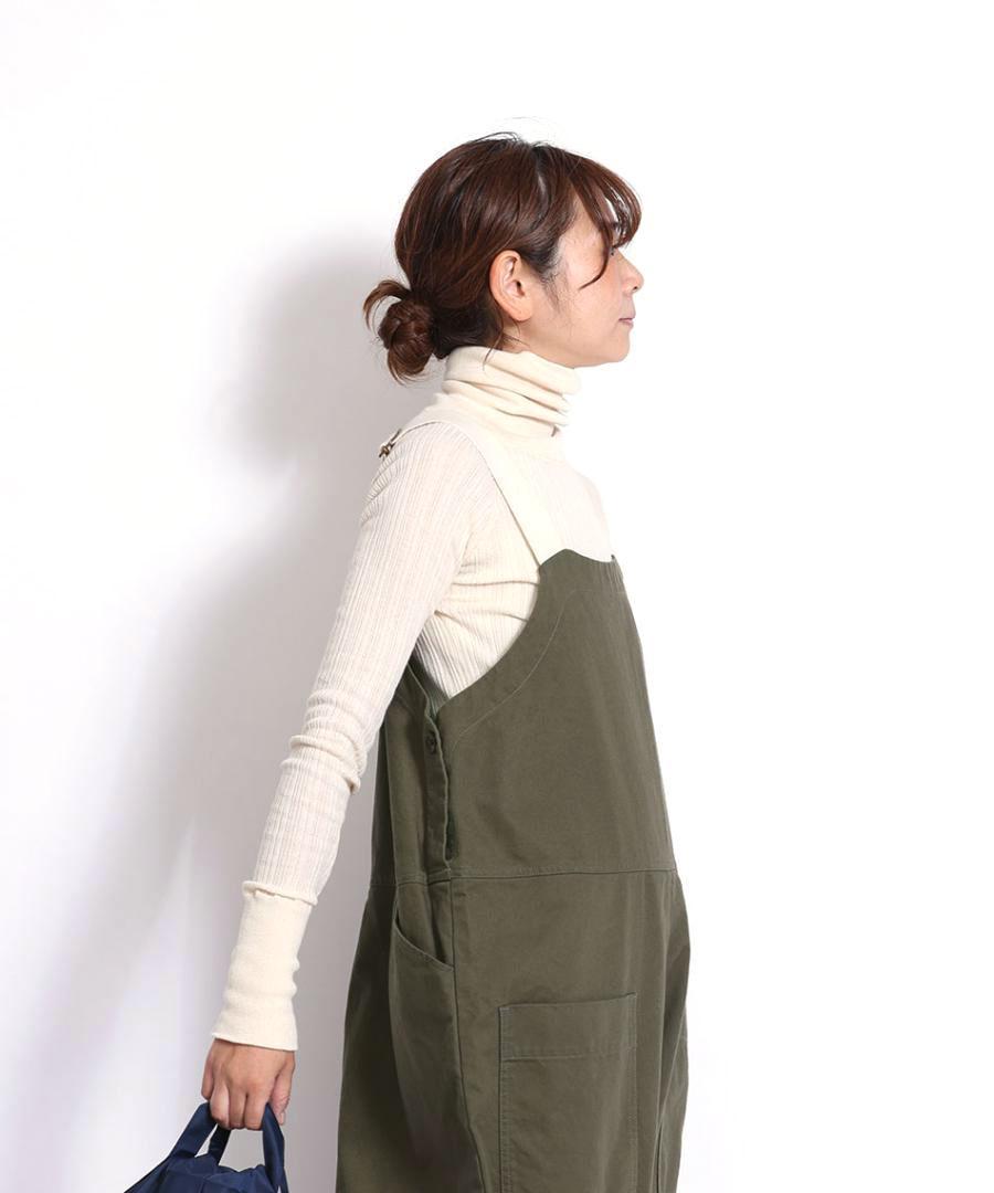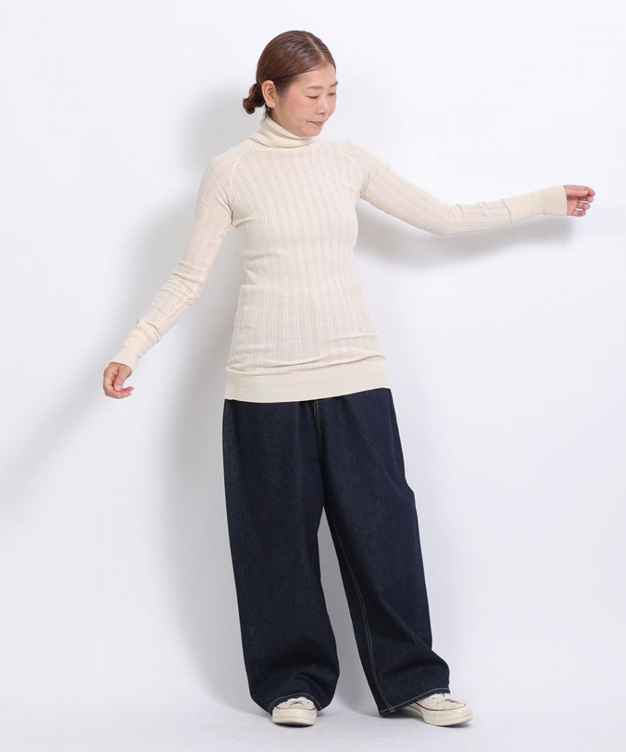コットン100%で、薄手でふわりと柔らかな肌触りのタートルニットです。