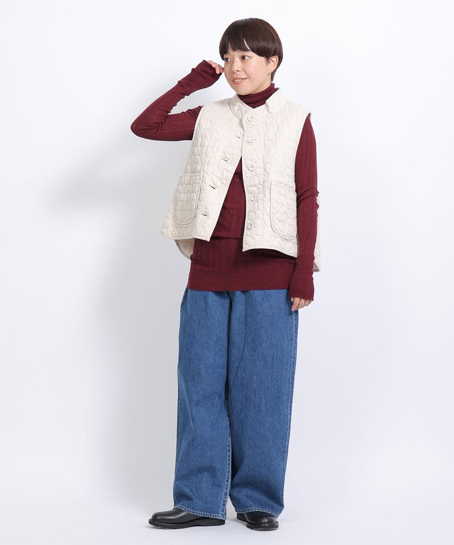 重ね着のインナーとしても、シンプルなデザインのニットは着回ししやすくオススメ◎