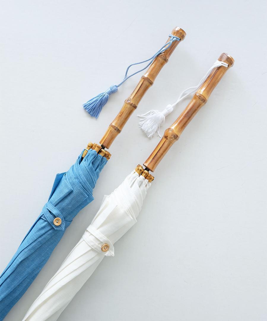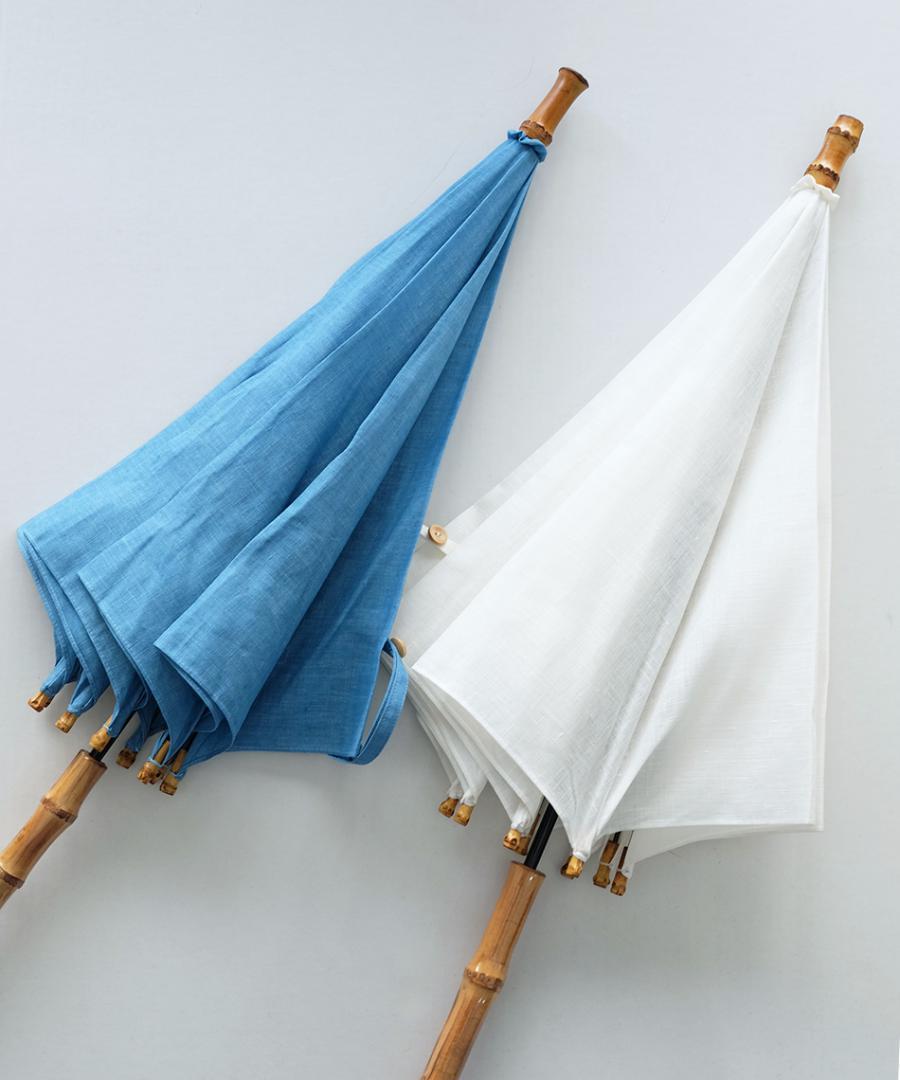 さわやかな白と水縹(水色)の2色は見た目にも持った感触も軽やかです。麻の素材感が涼しく、素敵な日傘です。