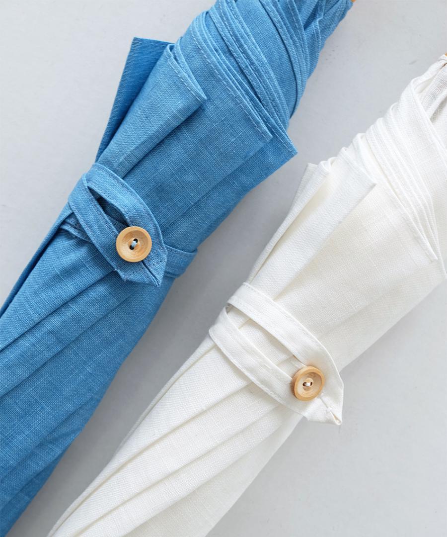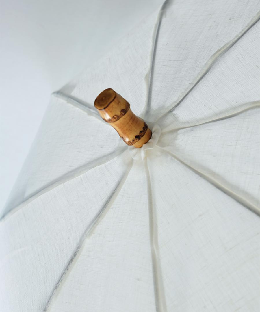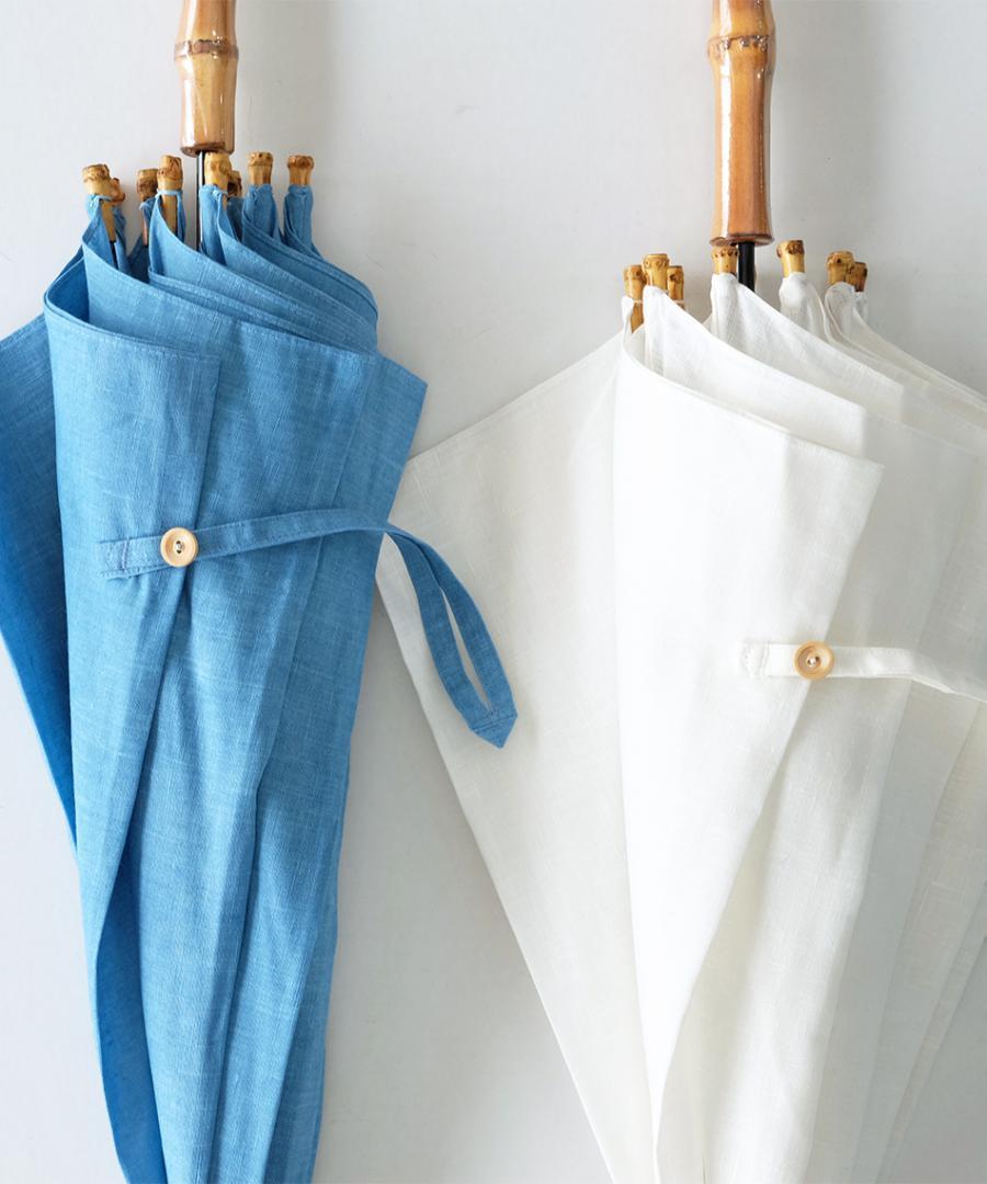 さわやかな白と水縹(水色)の2色は見た目にも持った感触も軽やかです。麻の素材感が涼しく、素敵な日傘です。