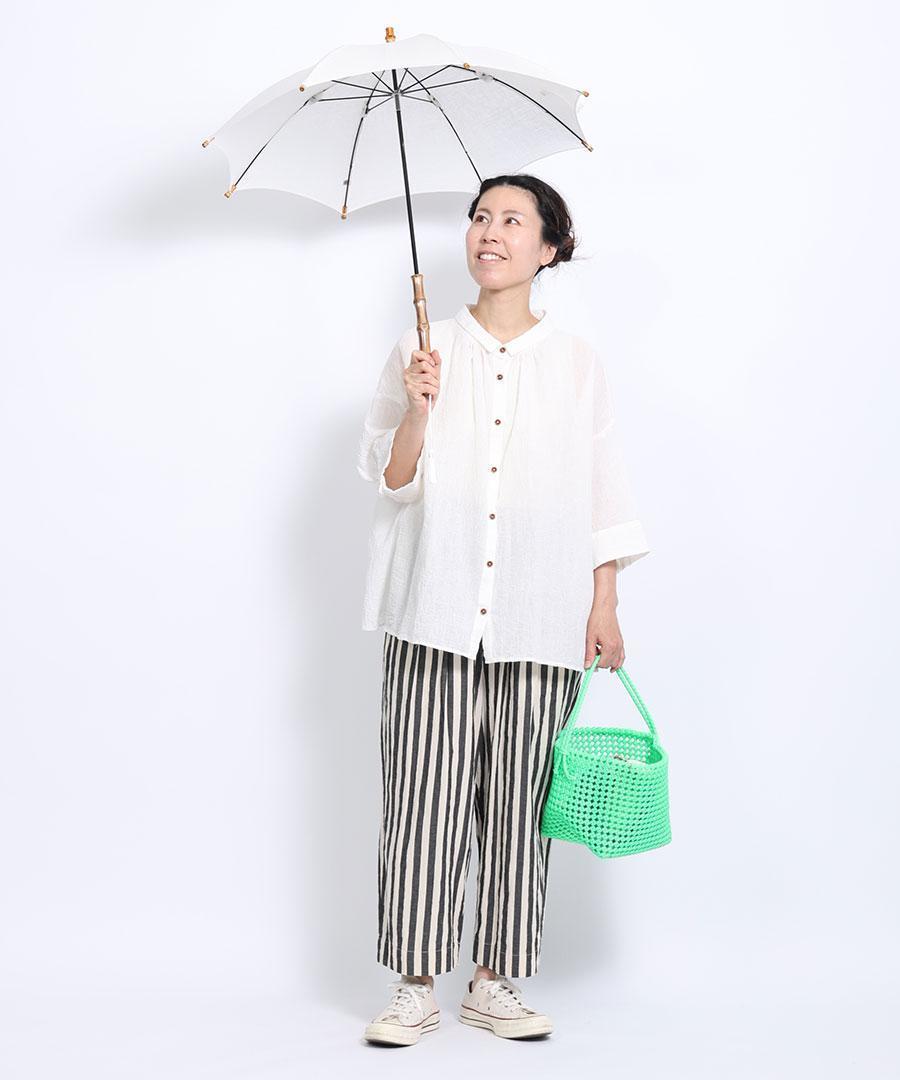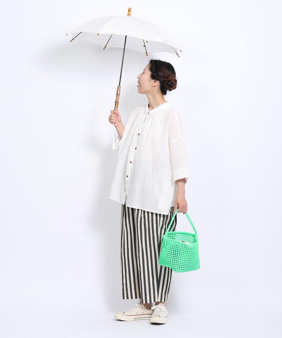 女性用に小ぶりにつくられ、軽く持ちやすく、日傘の時期に連れて歩きやすいサイズです。 お洋服との組み合わせを考えるのもまた楽しいですね。