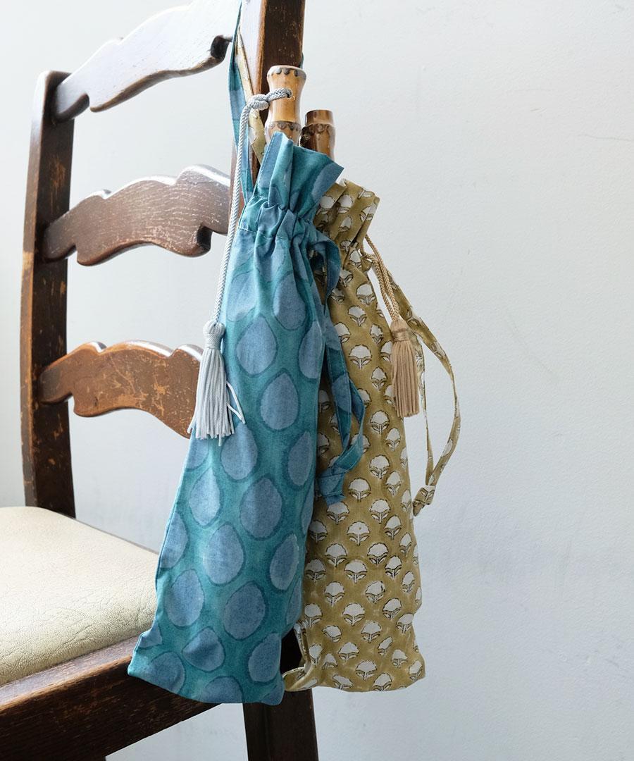 持ち手が付いて巾着状に提げられるのも可愛いです。