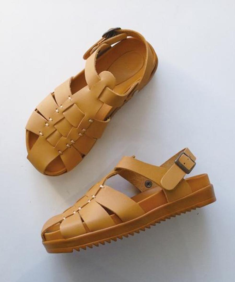 しっかりとした牛革一枚で足になじみやすい、2タイプのサンダルを作りました。