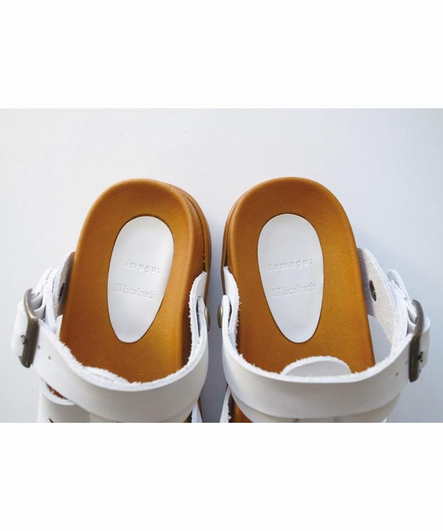 どちらのデザインも踵のベルトは可動式で後ろに向けてバックベルトとしても、前に向けてミュールとしても◎