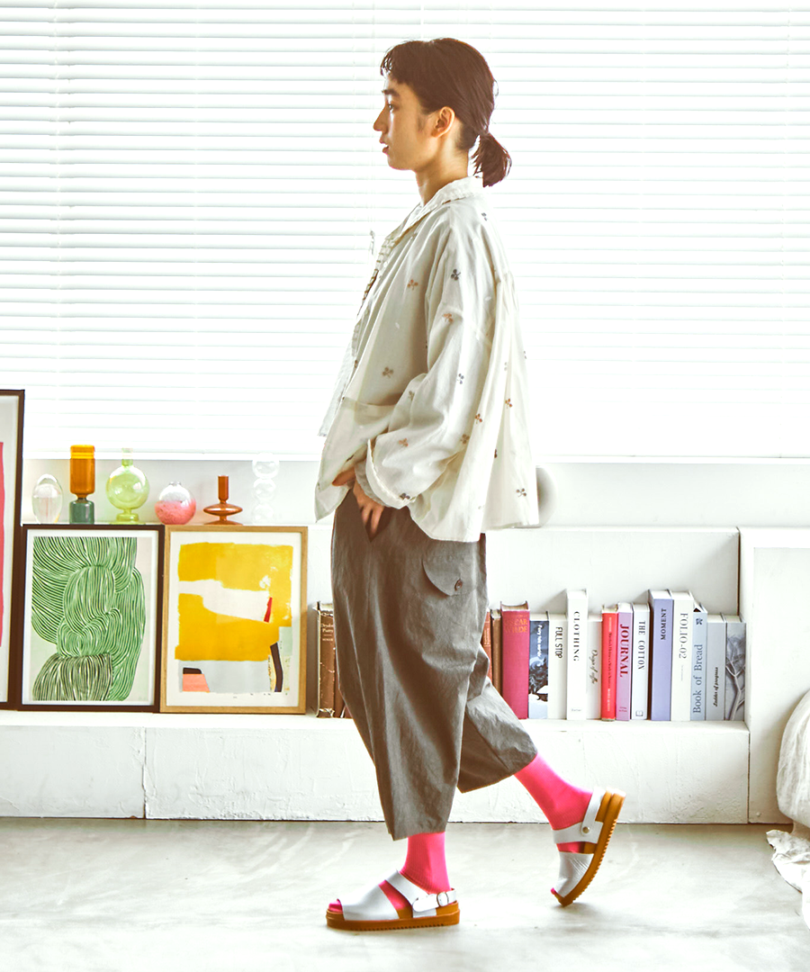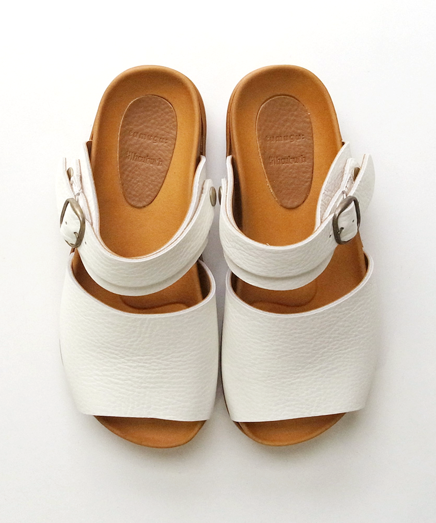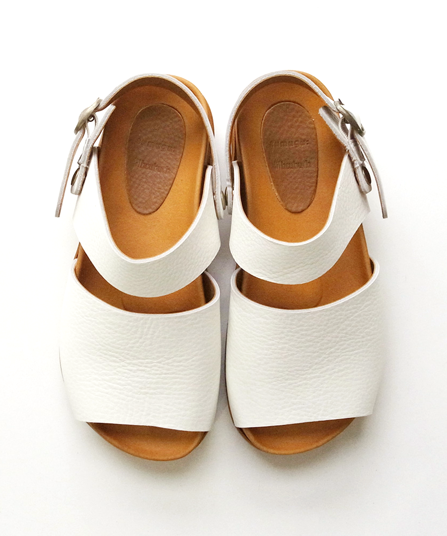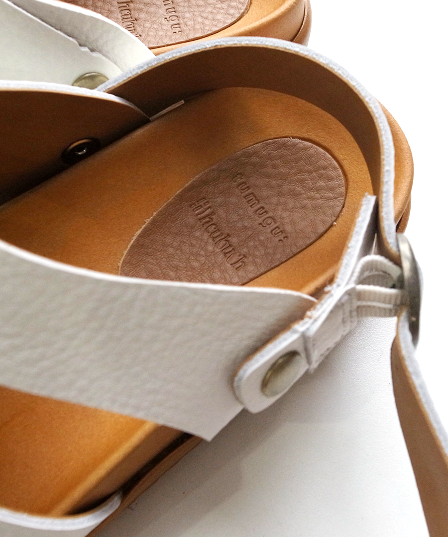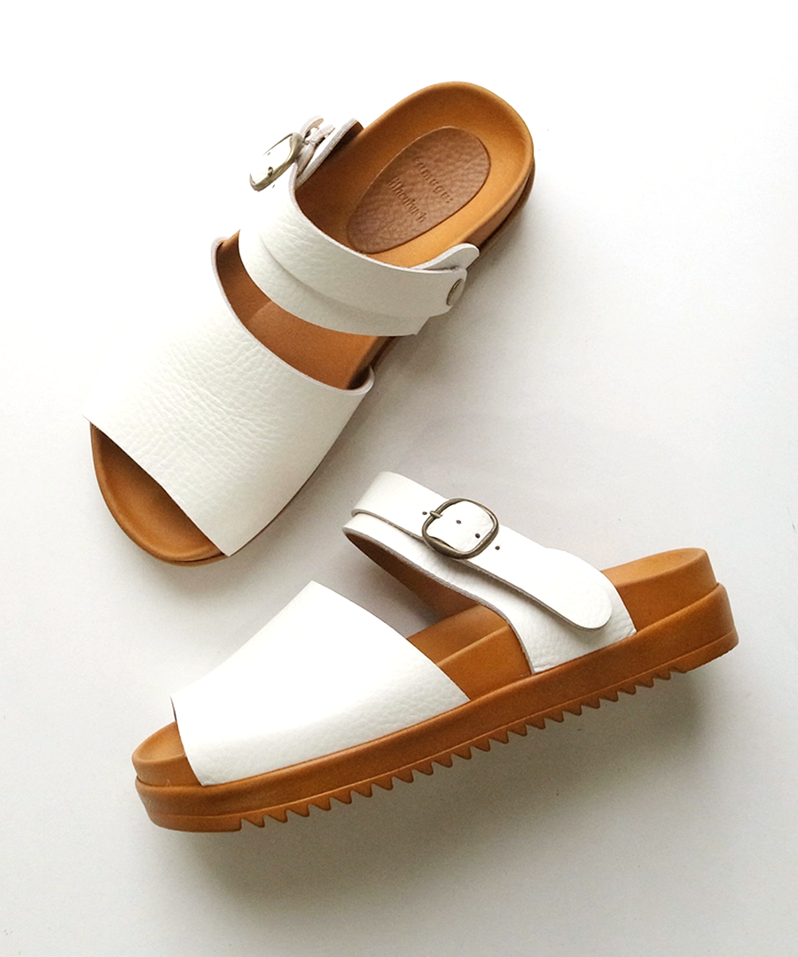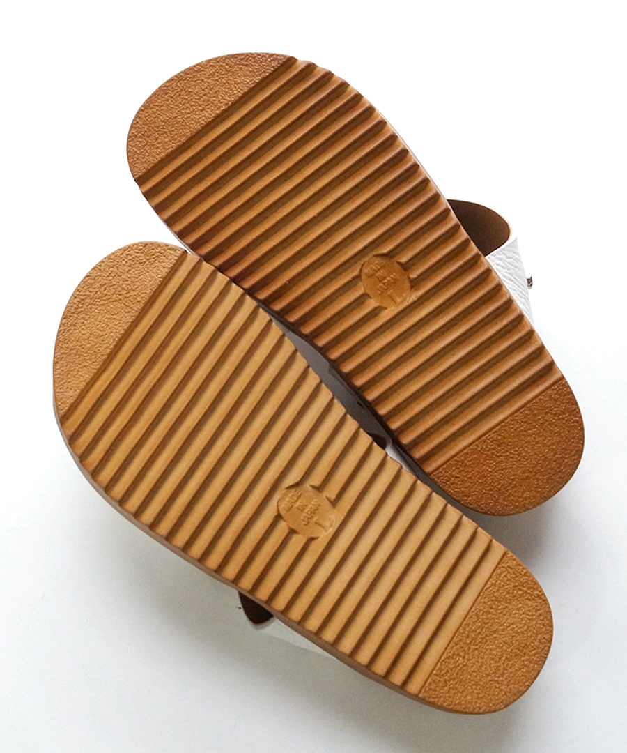 シボ感が印象的な柔らかい牛革で足に馴染みやすい、2タイプのサンダルを作りました。今年はベーシックカラーに加え、足元のアクセントになる「シルバー」が仲間入り。