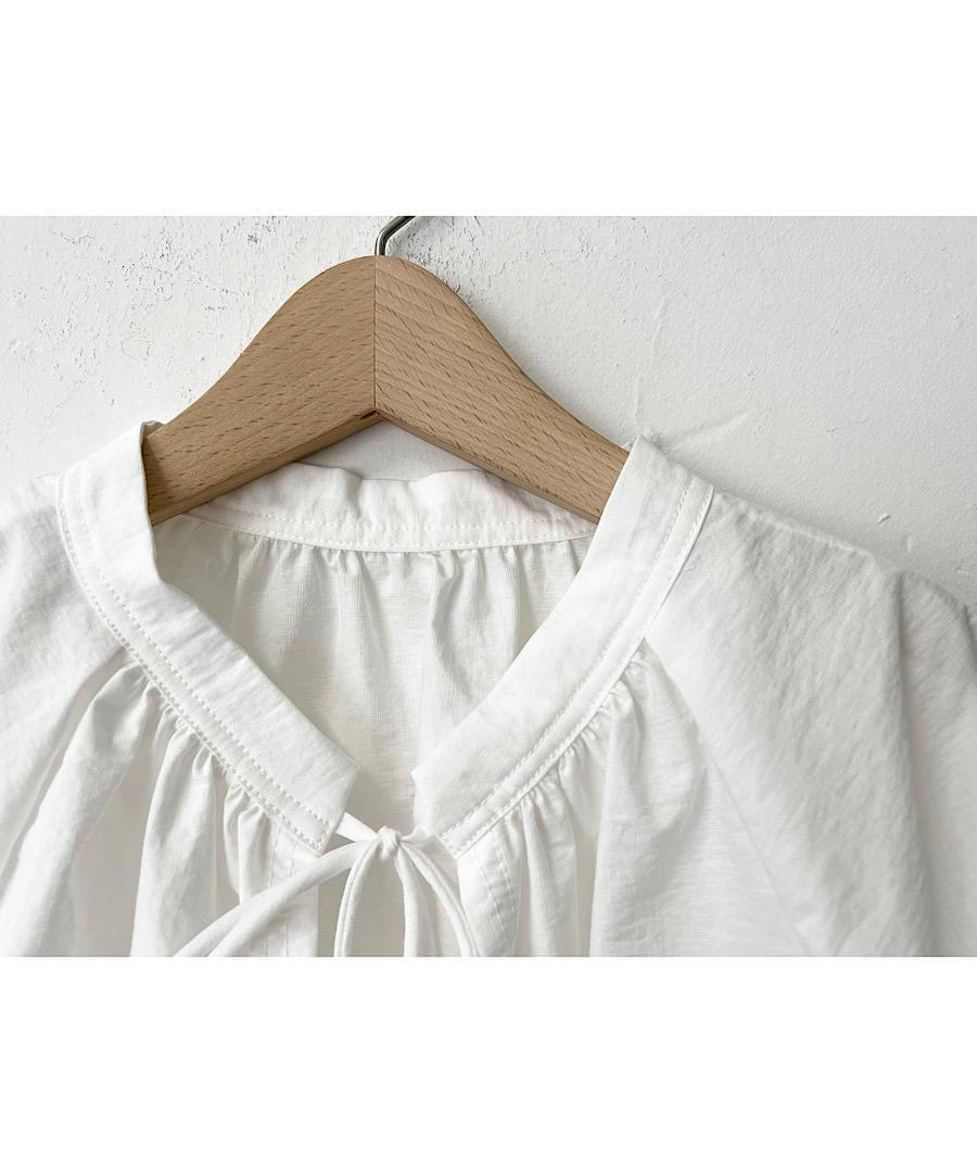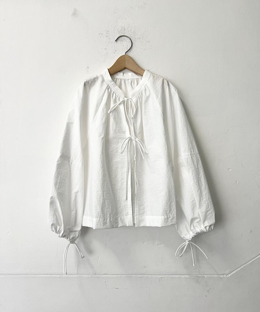 フロントは甘すぎない控えめのタックギャザーと細リボンで羽織りとしても着用いただけます。