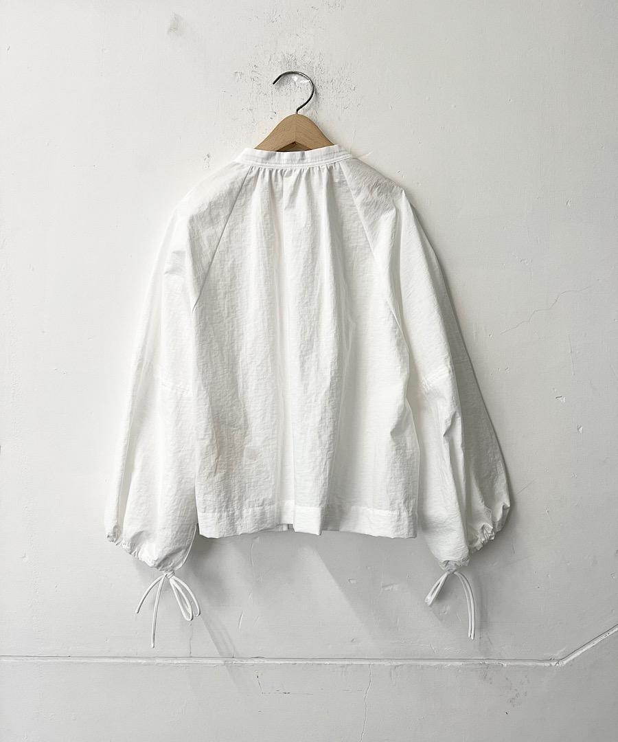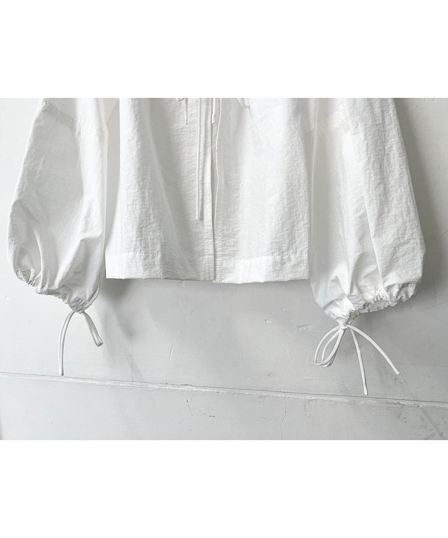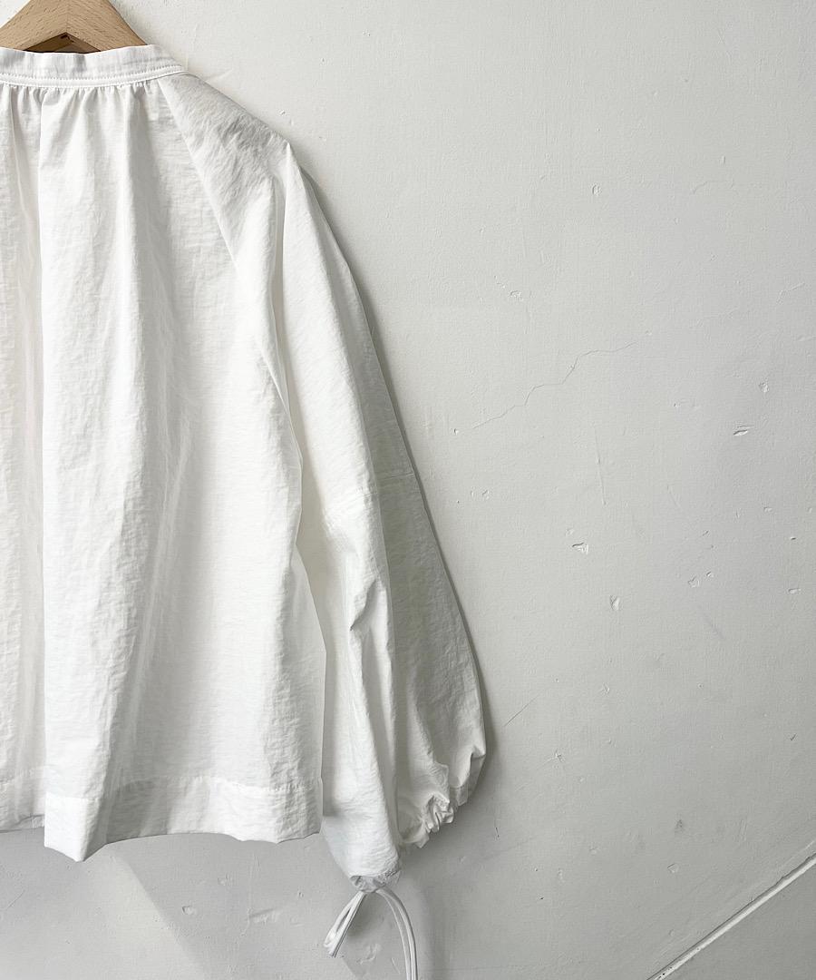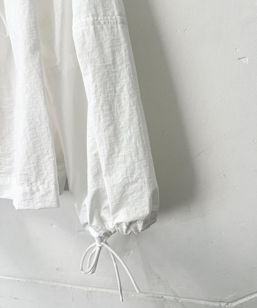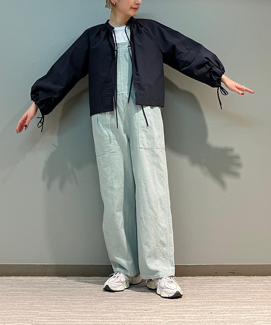 短めの着丈に幅広のラグランスリーブが特徴で、袖口は紐で絞れるデザイン。