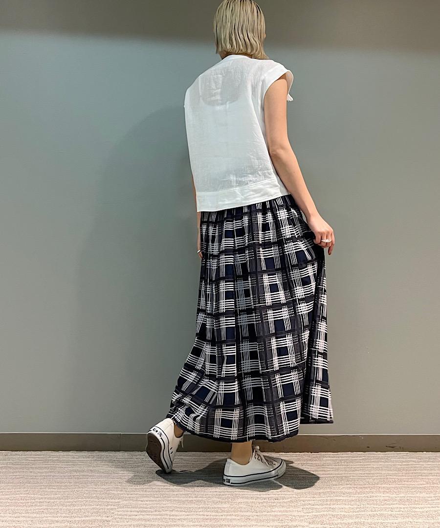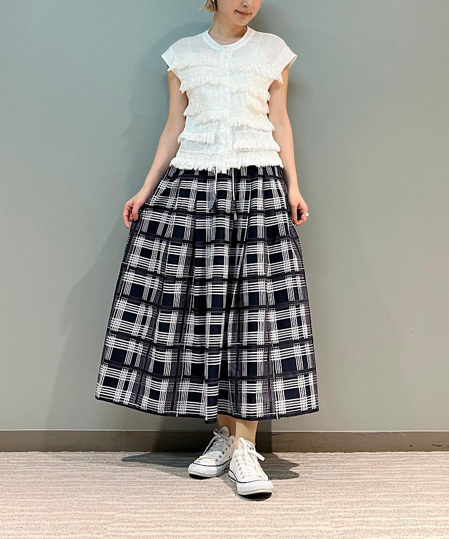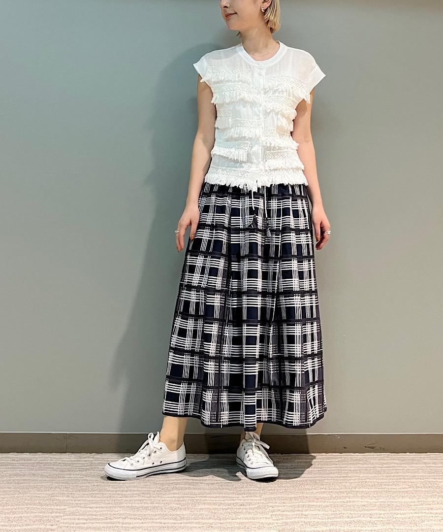 カジュアルにデニムやボリュームのあるスカートに合わせてラフに着こなすのがおすすめです。