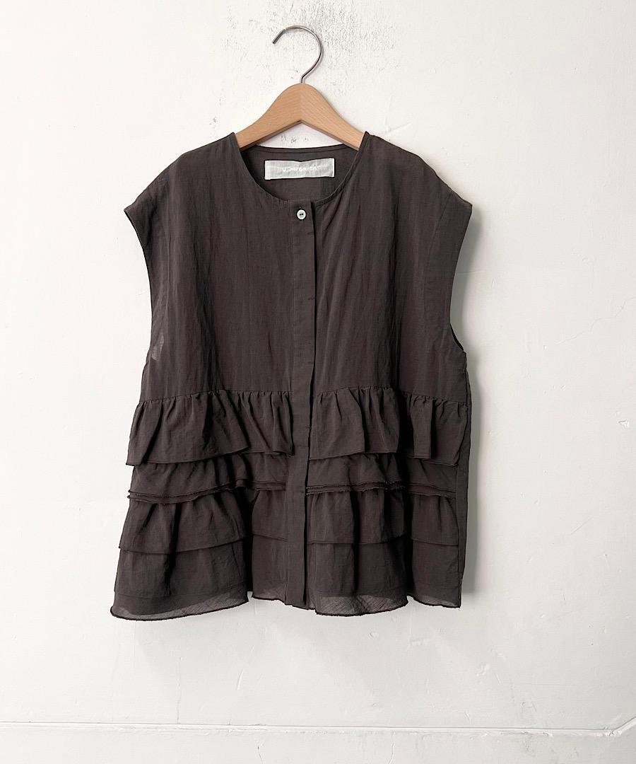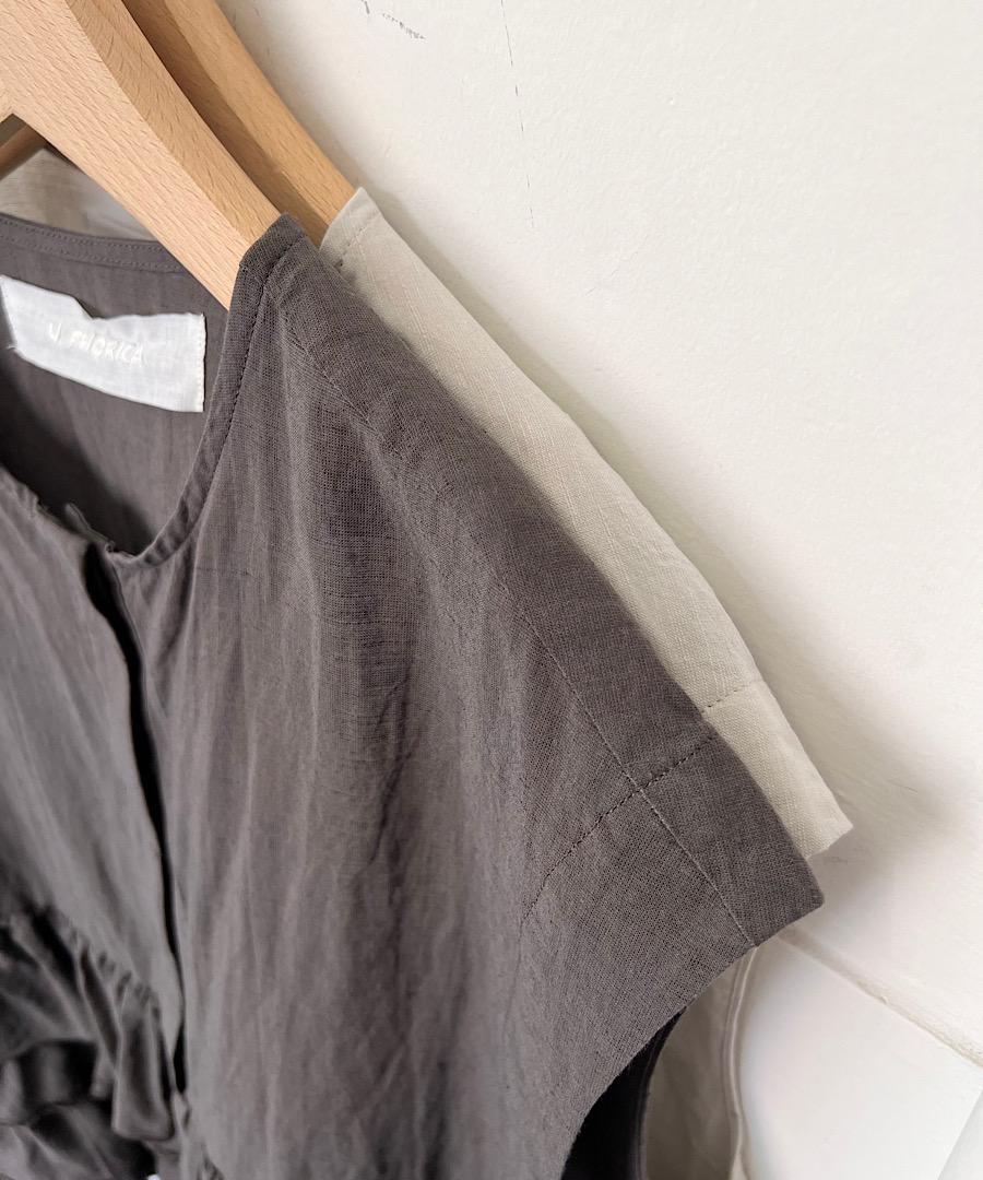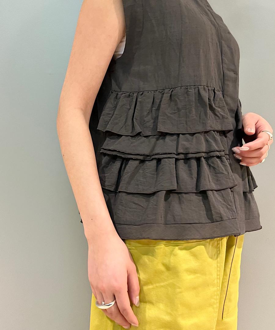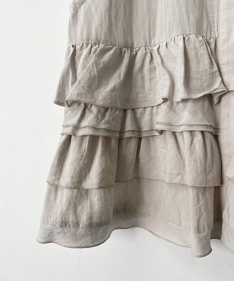 シボ感を出した独特の雰囲気のある素材とランダムにレイヤードされたフリルに拘ったデザインです。