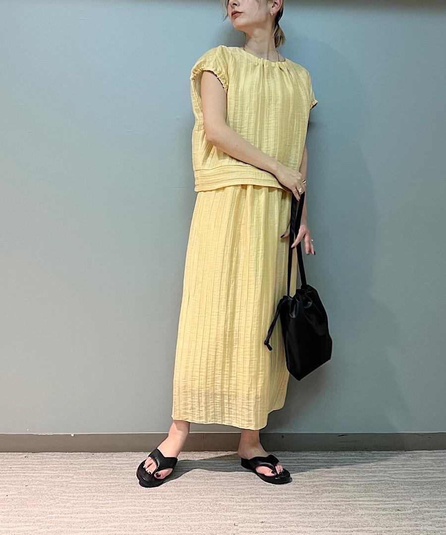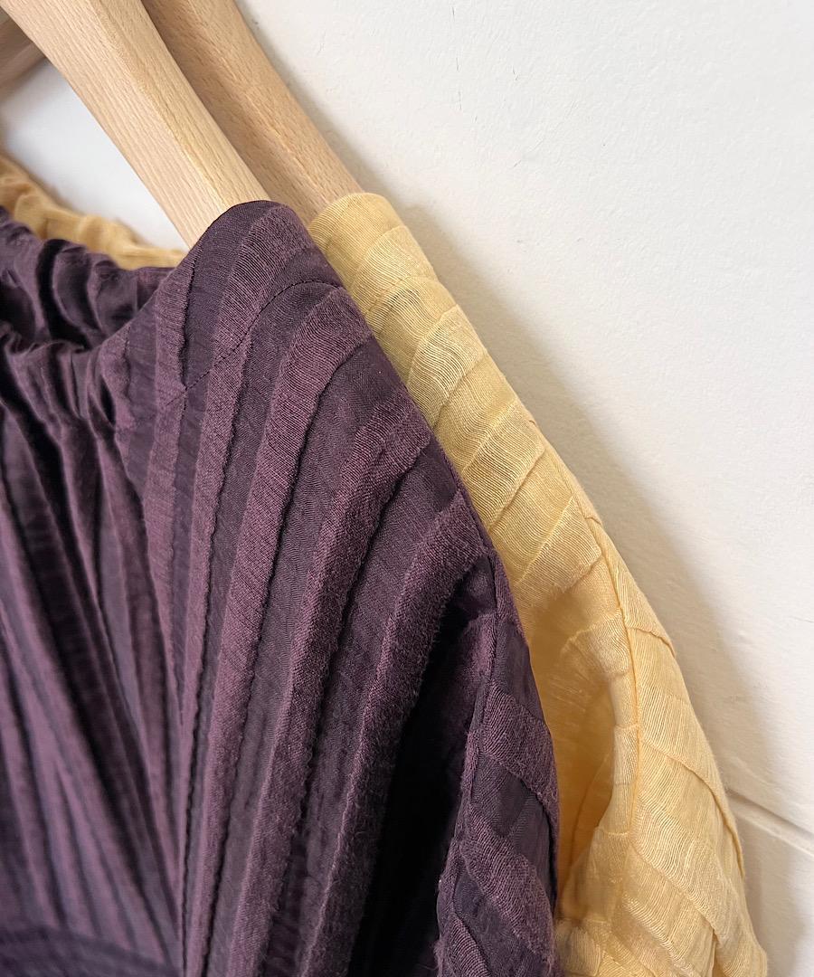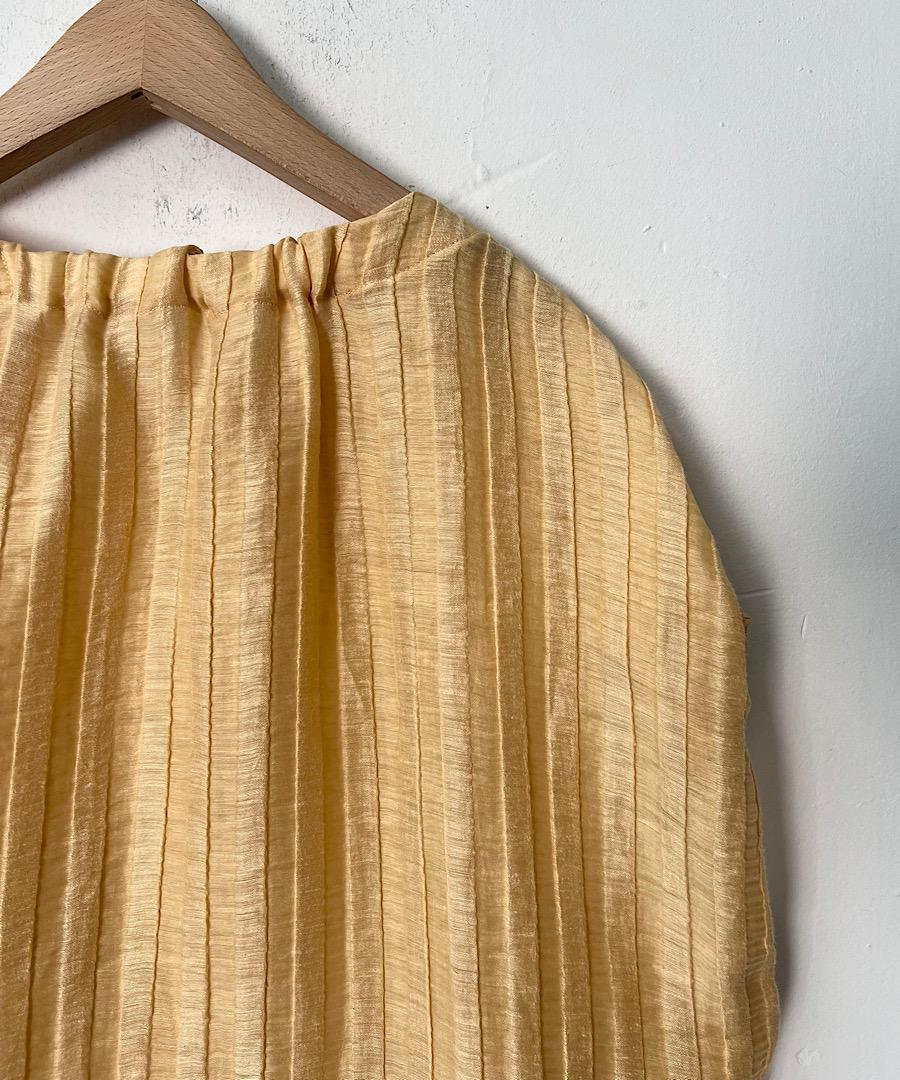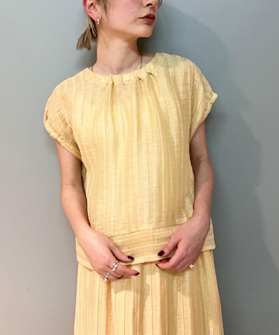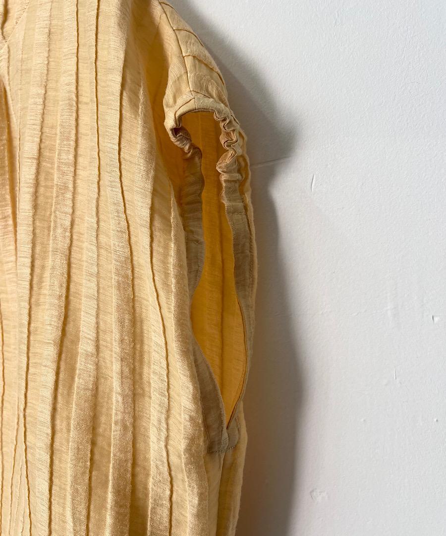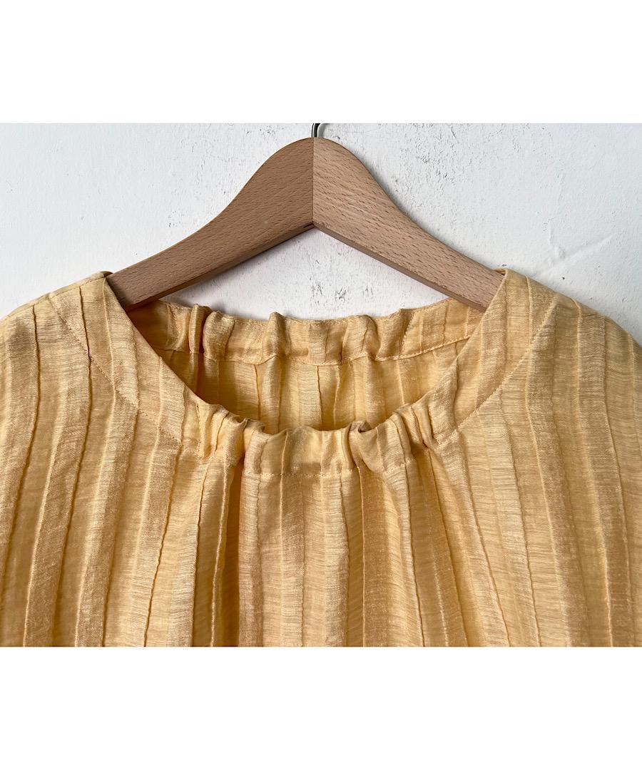 衿と袖に部分的にギャザーゴムを使い、立体感と女性らしさをプラス。