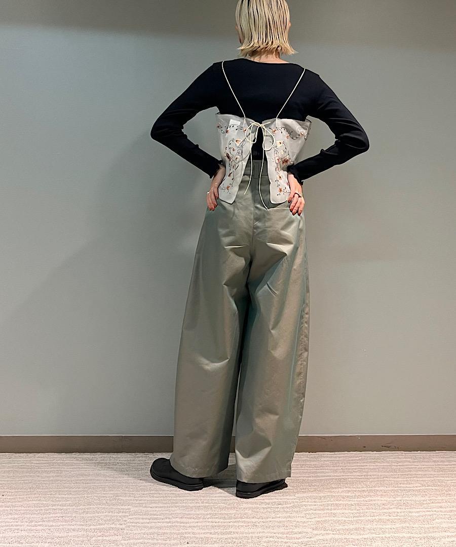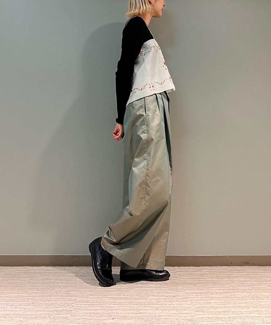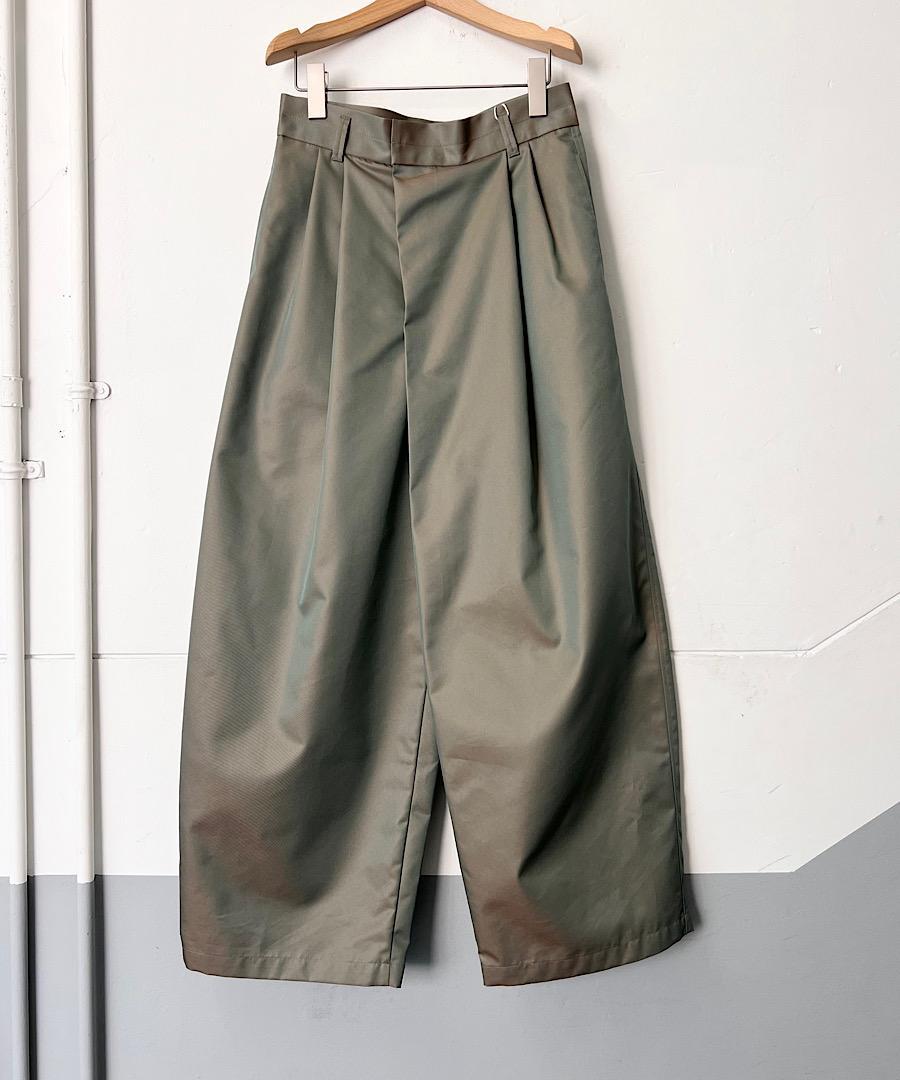 立体的な重めのシルエットとアシンメトリーのフロントタックデザインがポイント。