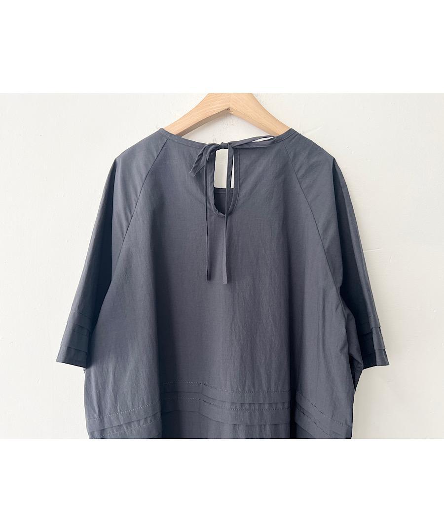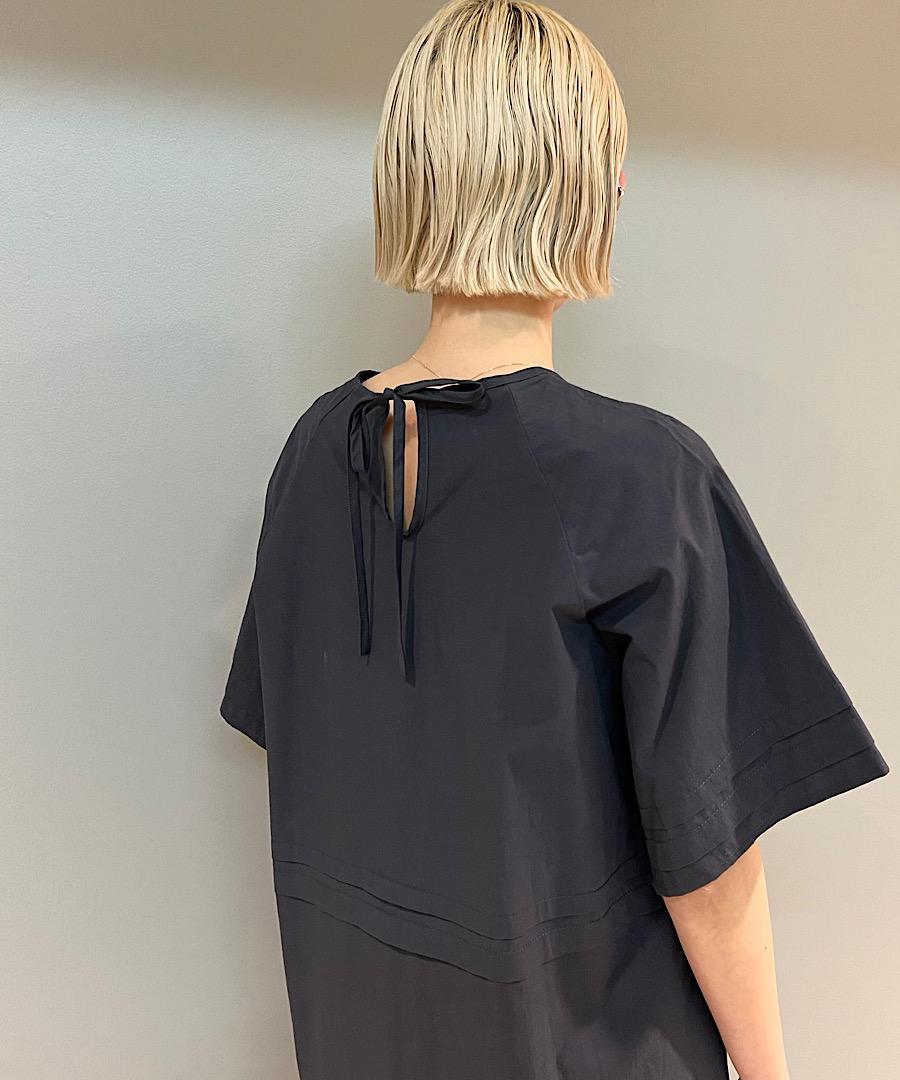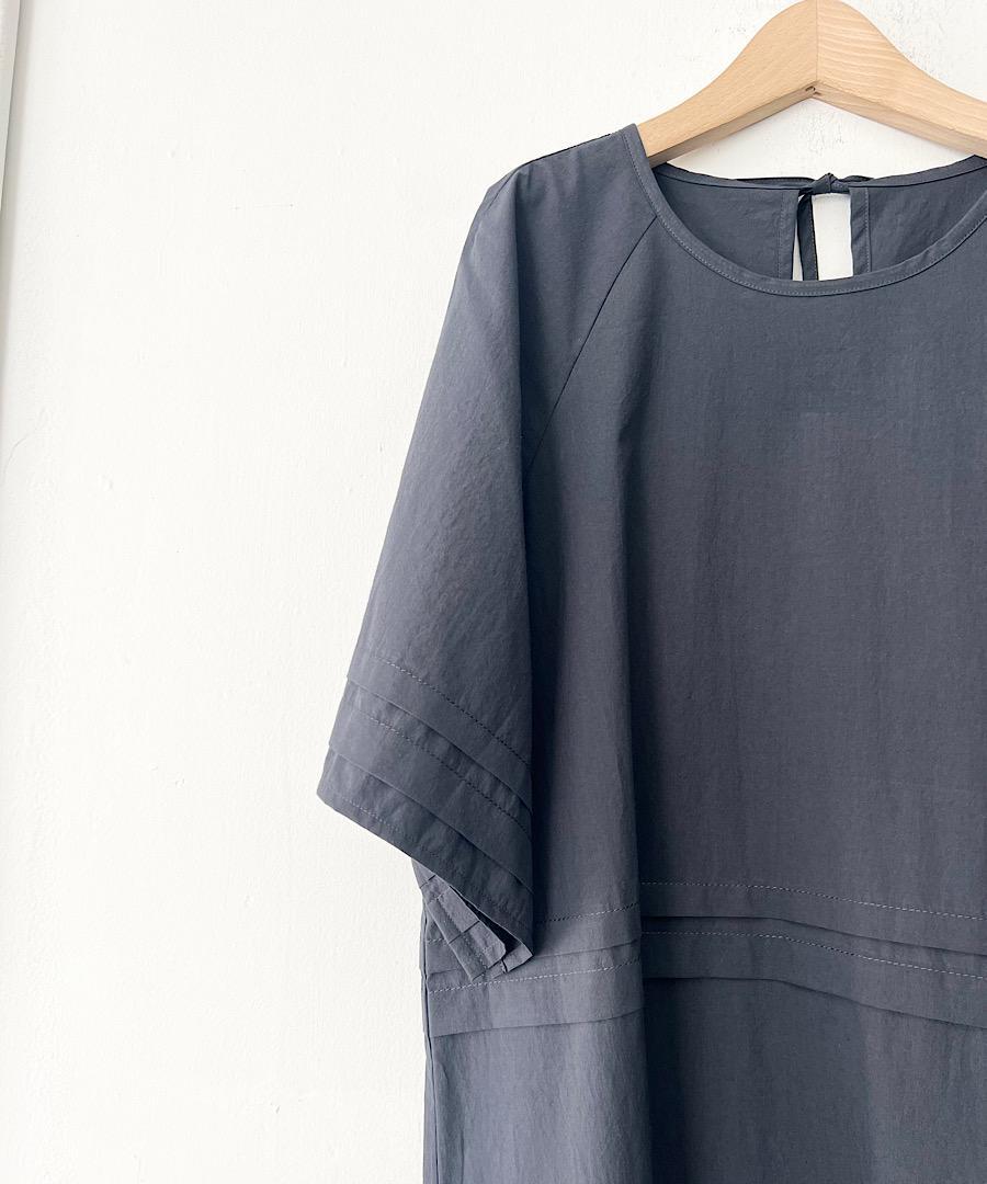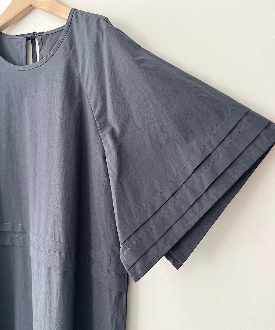 袖や身頃のランダムタックとハンカチーフのようなスリーブデザインがポイントです。