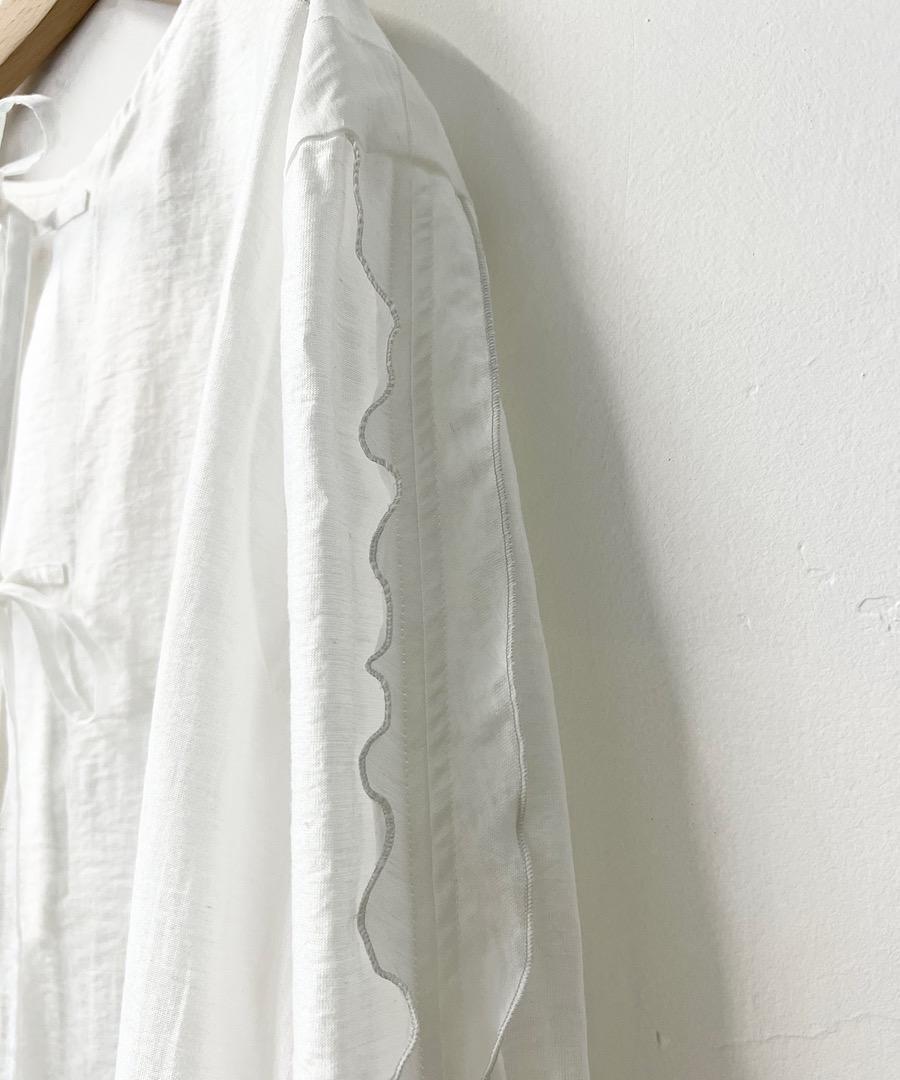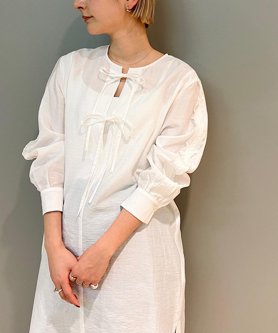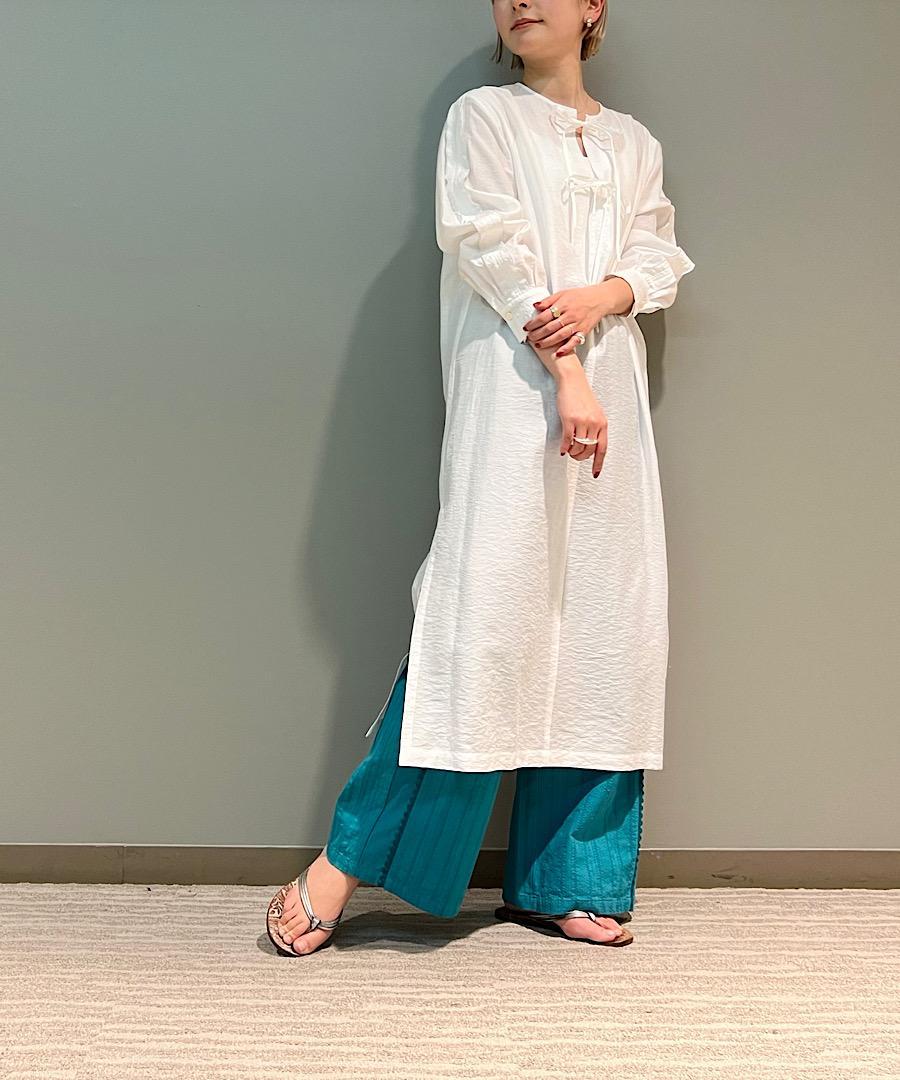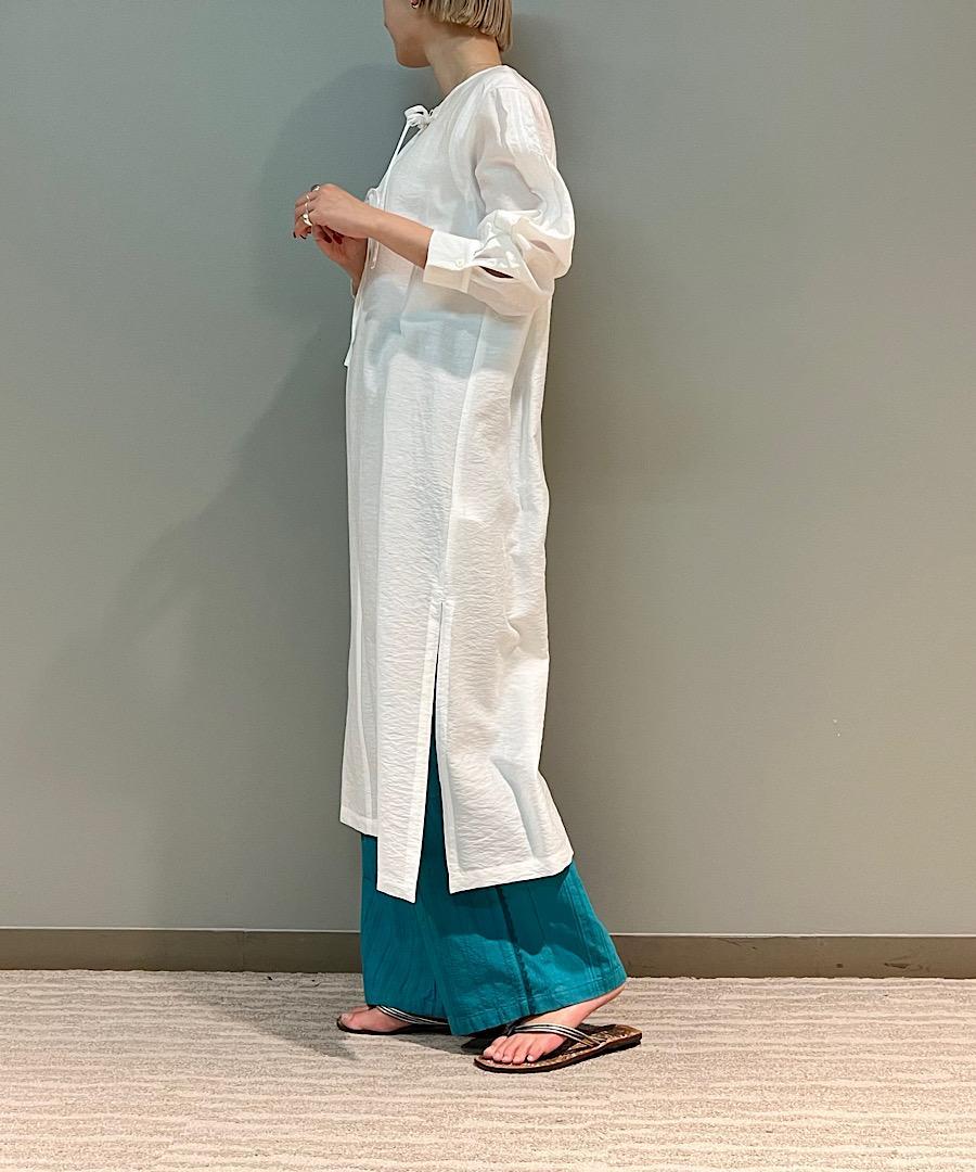 清涼感のあるシャンブレー素材で程よい透け感と微光沢が上品な印象の生地感です。