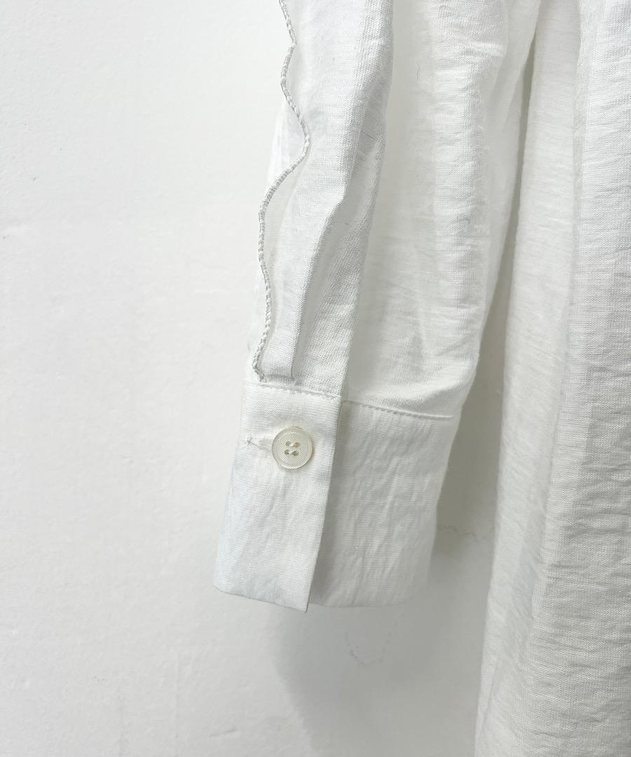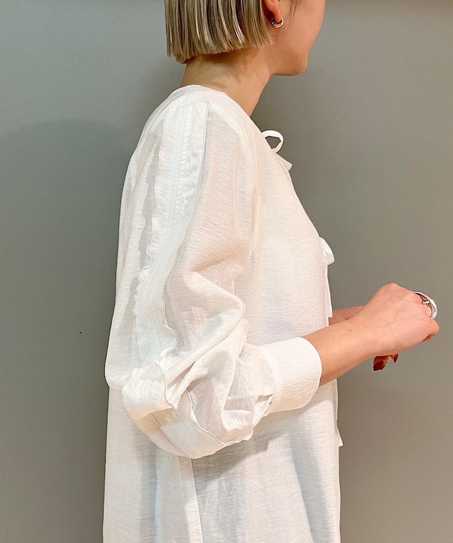 袖のフリルがポイントでカフスを加えることで甘さを抑えました。