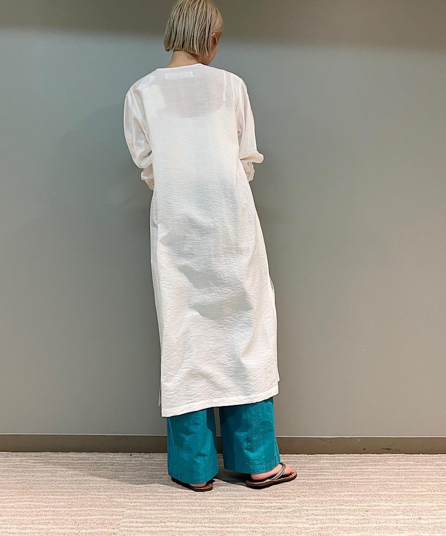 サイドにスリットが入っており、カジュアルなアイテムやキレイ目なボトムにも合わせやすい丈感。