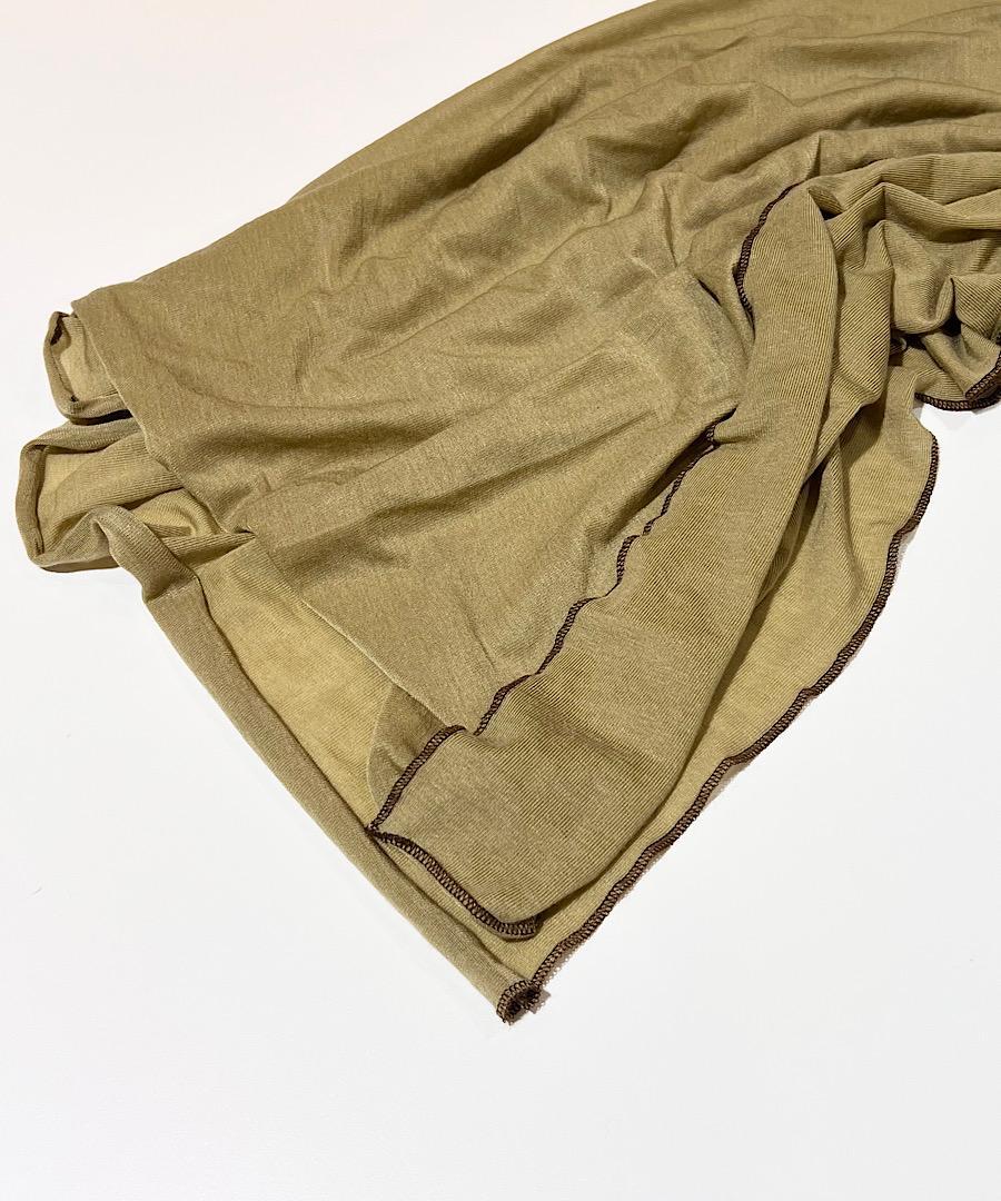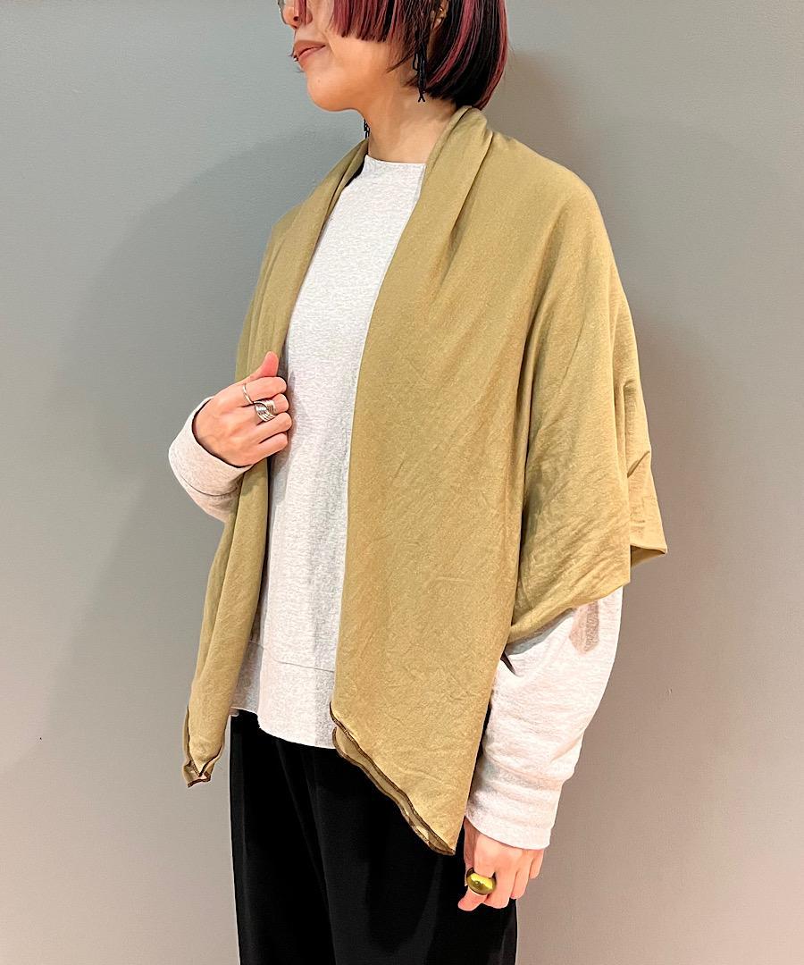 カシミヤ×シルク混で肌触りの良いシアー感のあるカットソー生地。